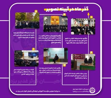 انتشار ماهنامه آذرماه دبیرستان دوره دوم ریحانه النبی س؛ روایتی تصویری و خبری از یک ماه تلاش، پیشرفتمعاون پرورشی دبیرستان دخترانه دوره دومدی 14, 1404📢 ماهنامه آذرماه دبیرستان دوره دوم ریحانه النبی س در دو صفحه انتشار یافت. با افتخار، شماره ششم ماهنامه منتشر ... ادامه مطلب