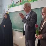 حضور معاونت محترم مجتمع خاتم الانبیاء جناب آقای شریفی و جناب آقای عابدی در دبستان و خوش آمدگویی به دانش آموزان و اهدای گل به معلمان و کادر دبستان