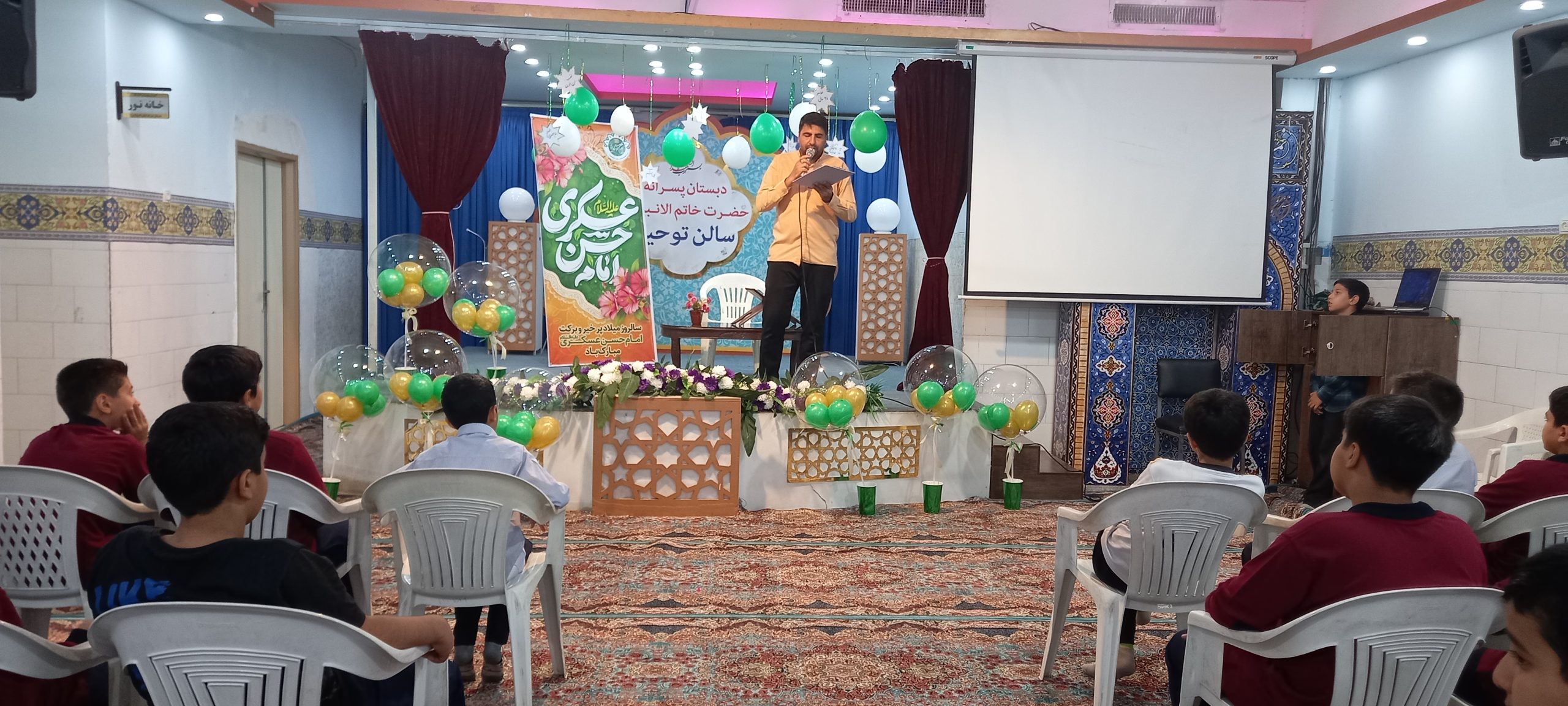 اجرای اولین طرح توسل با محوریت ولادت امام حسن عسکری علیه السلام با اجرای دو برنامه برای پایه های چهارم و ششم اجرا کننده این طرح در سالن توحید برگزار شد در این مراسم مولودی خوانی و دکلمه خوانی و مسابقه و حدیث خوانی و اجرای برنامه طنز و زندگی نامه امام یازدهم و ……. و در نهایت پذیرایی انجام شد.در طرح های توسل هر پایه که مزین به نام یکی از ائمه اطهار می باشد ولادت یا شهادت معصوم مورد نظر را مراسم میگیرند و با توسل به ایشان در تمامی کارهای کلاسی خود در طول سال به ایشان متوسل می شوند.