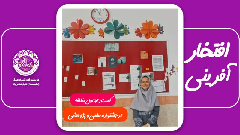 کسب رتبه اول منطقه در جشنواره علمی و پژوهشی در رشته مقاله نویسی سلول های بنیادین دانش آموز آیناز ذاکر از پایه پایه هشتم را تبریک عرض مینمایم….