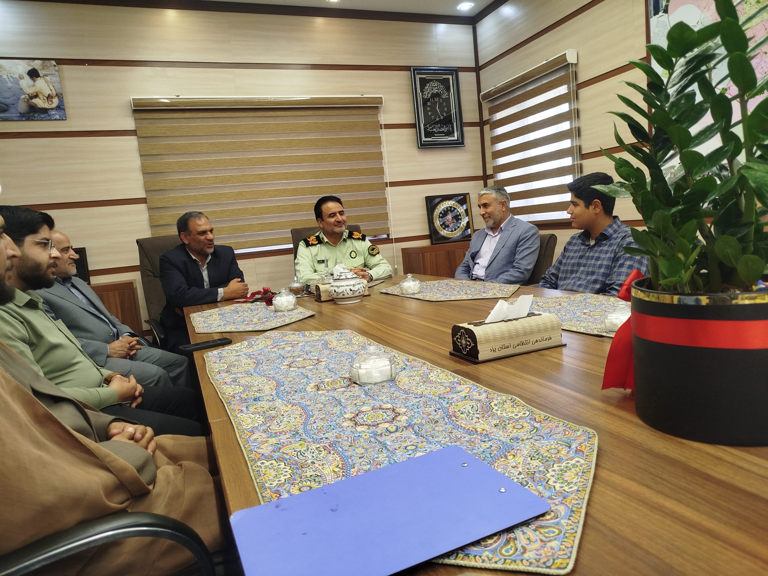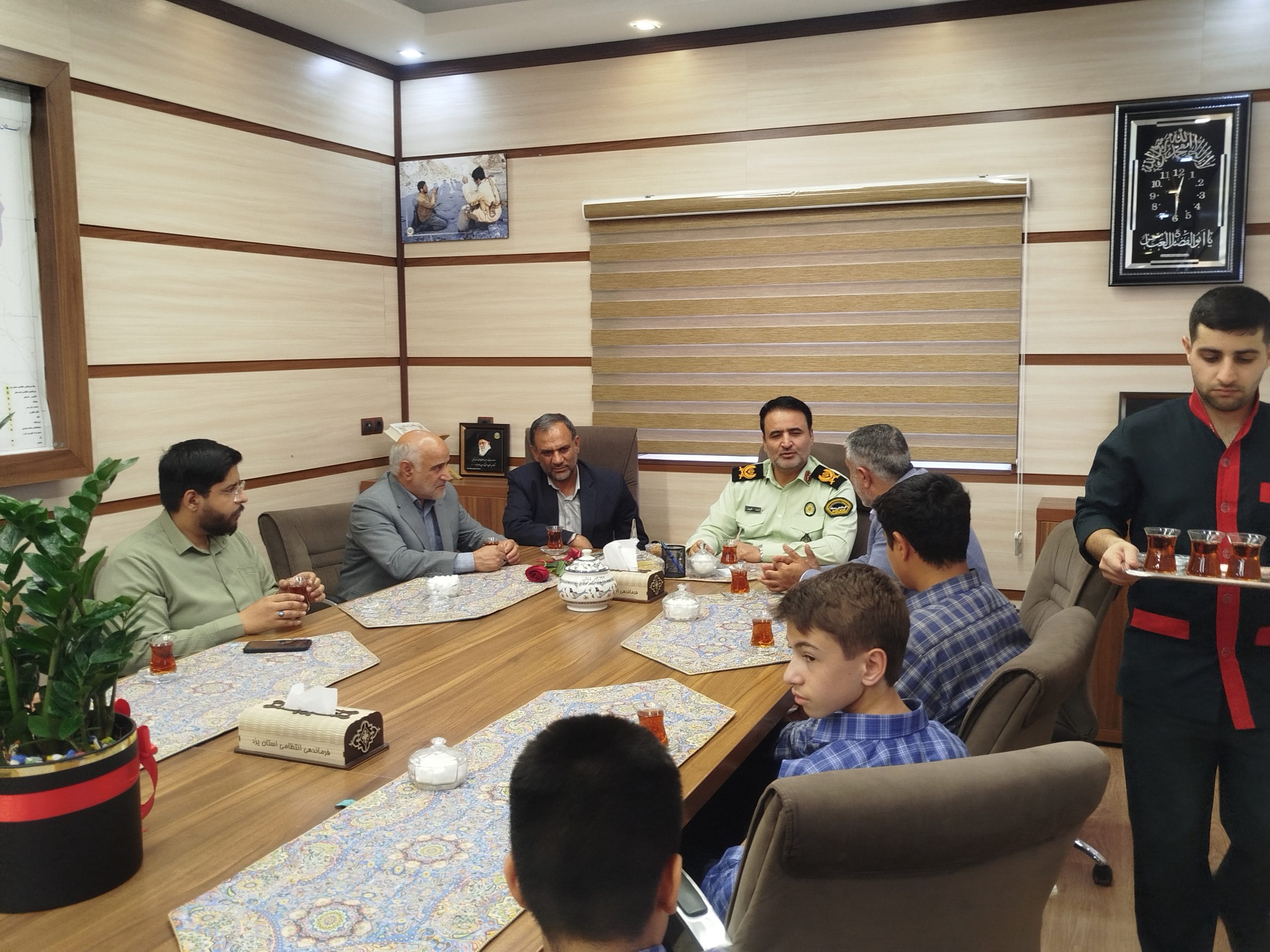 مناسبت گرامیداشت هفته نیروی انتظامی، مدیرعامل محترم مجتمع آموزشی تربیتی حضرت خاتم الانبیا و معاون ارجمند امور مدارس و مدیر و جمعی از دانشآموزان فرهیخته و اعضای محترم کادر دبیرستان پسرانه دوره اول خاتمالانبیا (ص)، با حضور در مرکز فرماندهی نیروی انتظامی استان، ضمن ادای احترام به مقام شامخ حافظان نظم و امنیت، از تلاشهای بیوقفه و مجاهدتهای شبانهروزی کارکنان خدوم نیروی انتظامی تقدیر و تجلیل بهعمل آوردند.