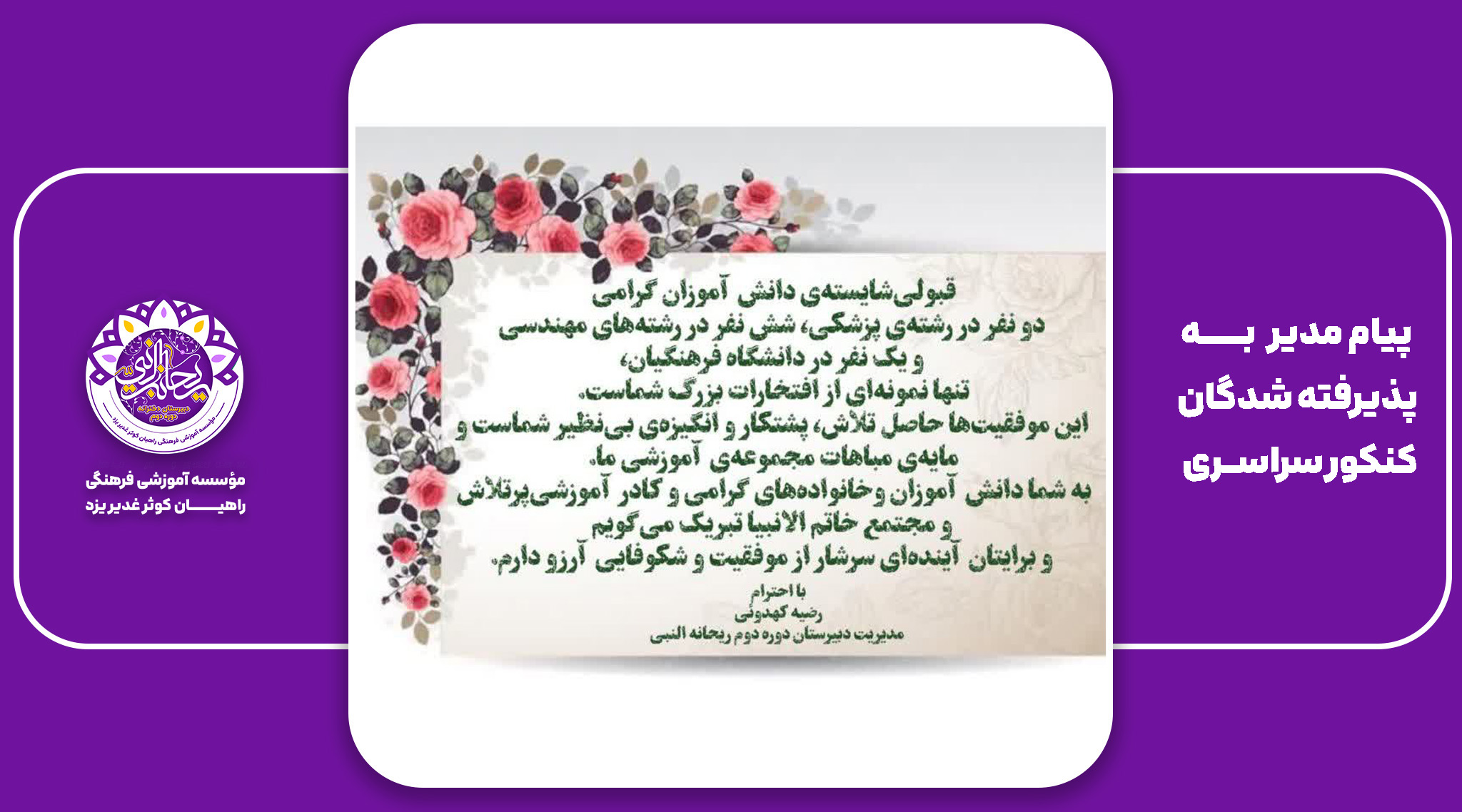 به شما، دانش آموزان وخانوادههای گرامی و کادر آموزشی و مجتمع خاتم الانبیا تبریک میگویم