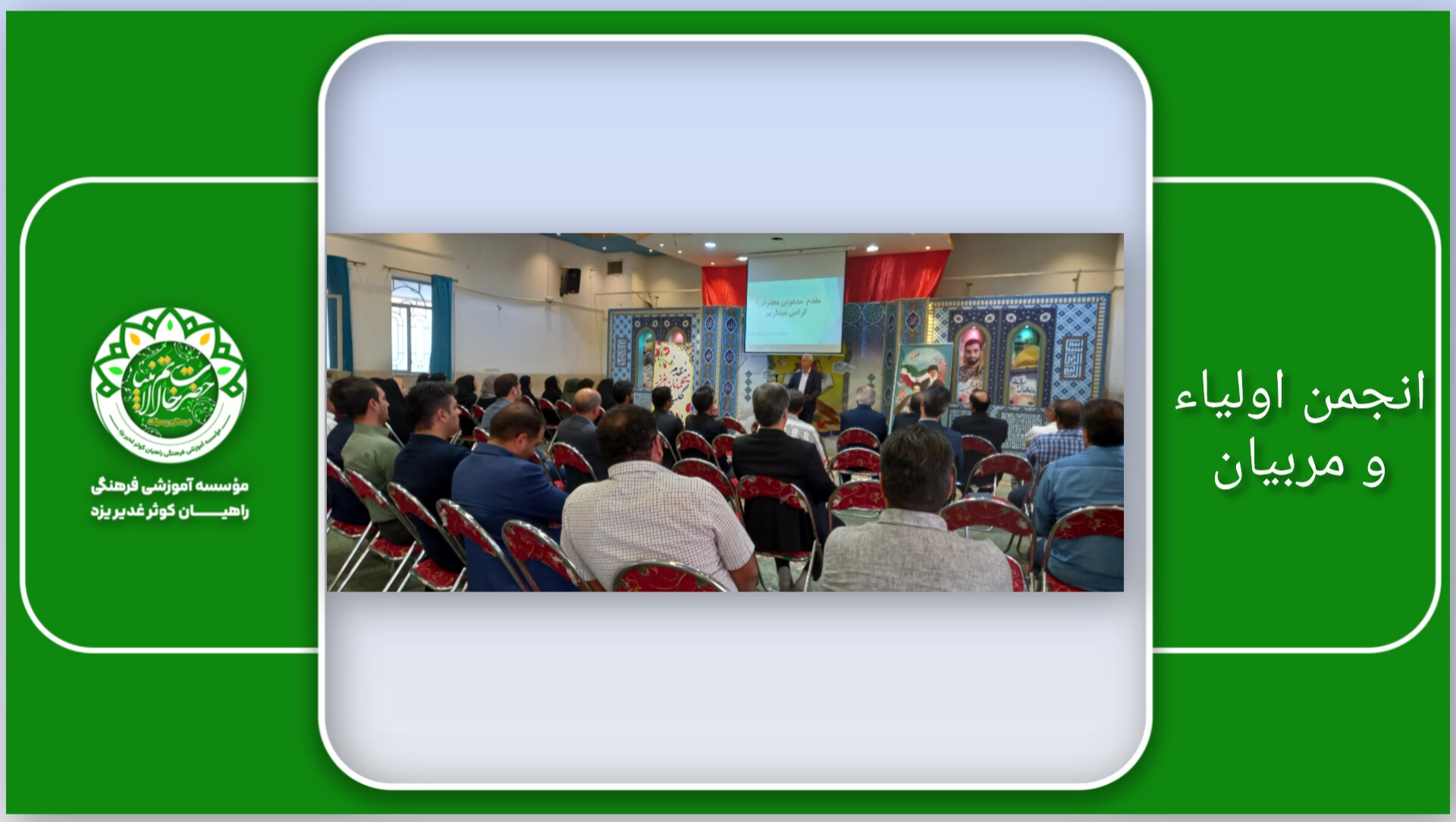 جلسه معارفه کاندیدای انجمن اولیاء و مربیان با سخنرانی مدیریت دبستان و معرفی کاندیدا در سالن معراج برگزار شد