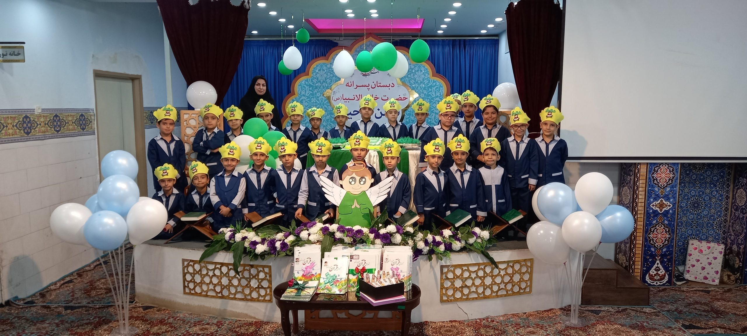در این مراسم ضمن معرفی کتاب قران به عنوان راهنمای زندگی ما مسلمانان و توضیحاتی پیرامون این موضوع به صورت کودکانه ،سعی شد با اجرای برنامه های شاد و مهیج و متنوع روز خوبی برای دانش اموزان پایه اول رقم زد.
