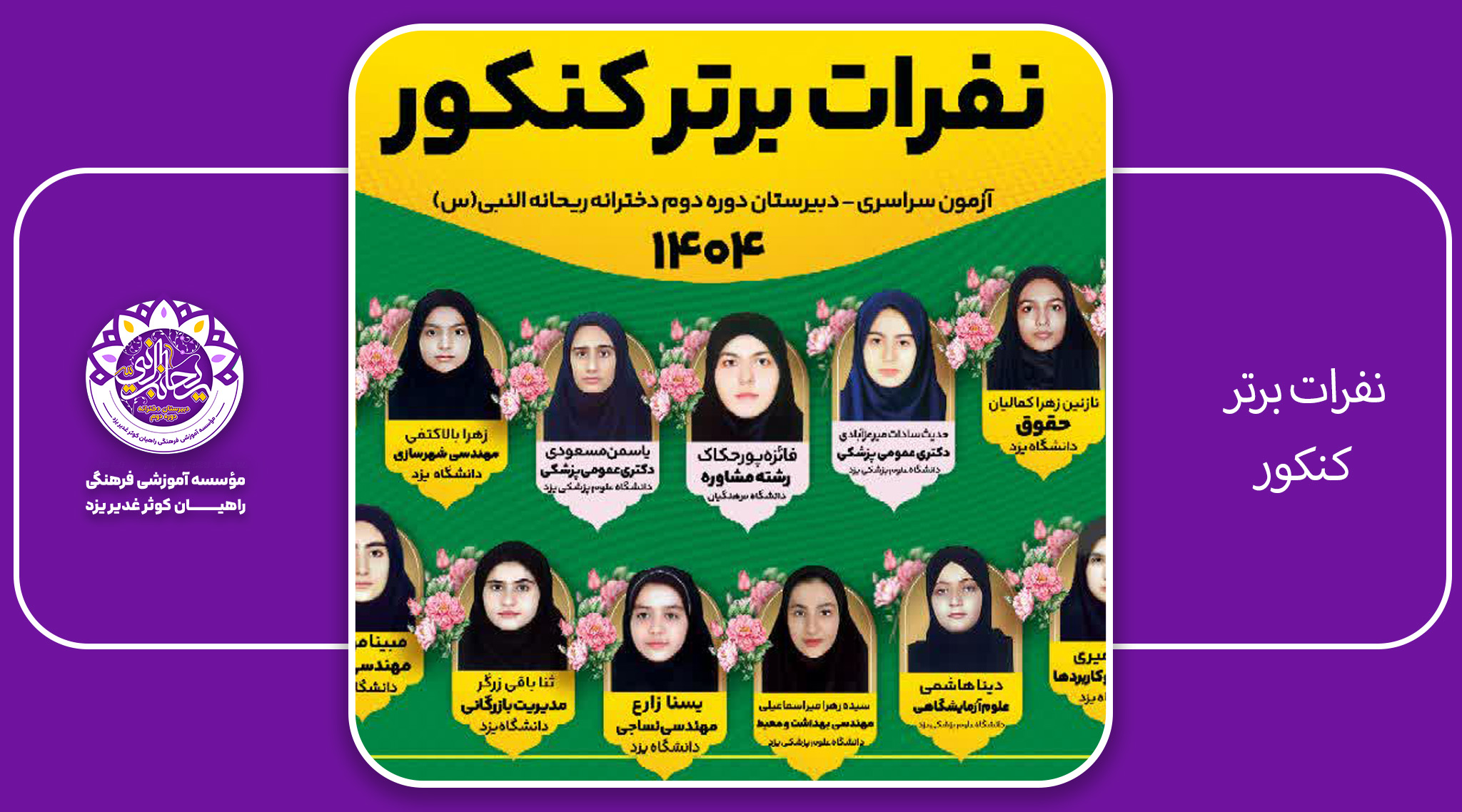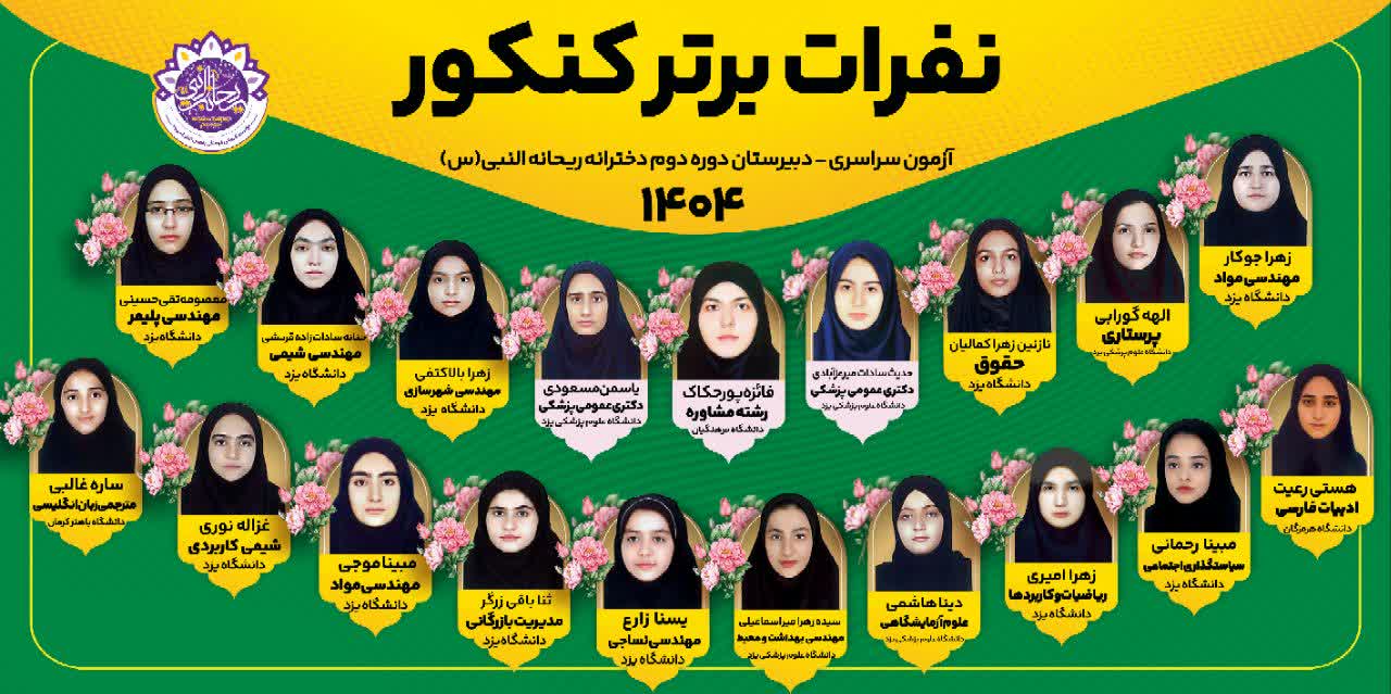 ⚜️ افتخارآفرینی دانشآموزان دبیرستان دوره دوم ریحانه النبی (س) در کنکور سراسری 1404 اعلام شد.