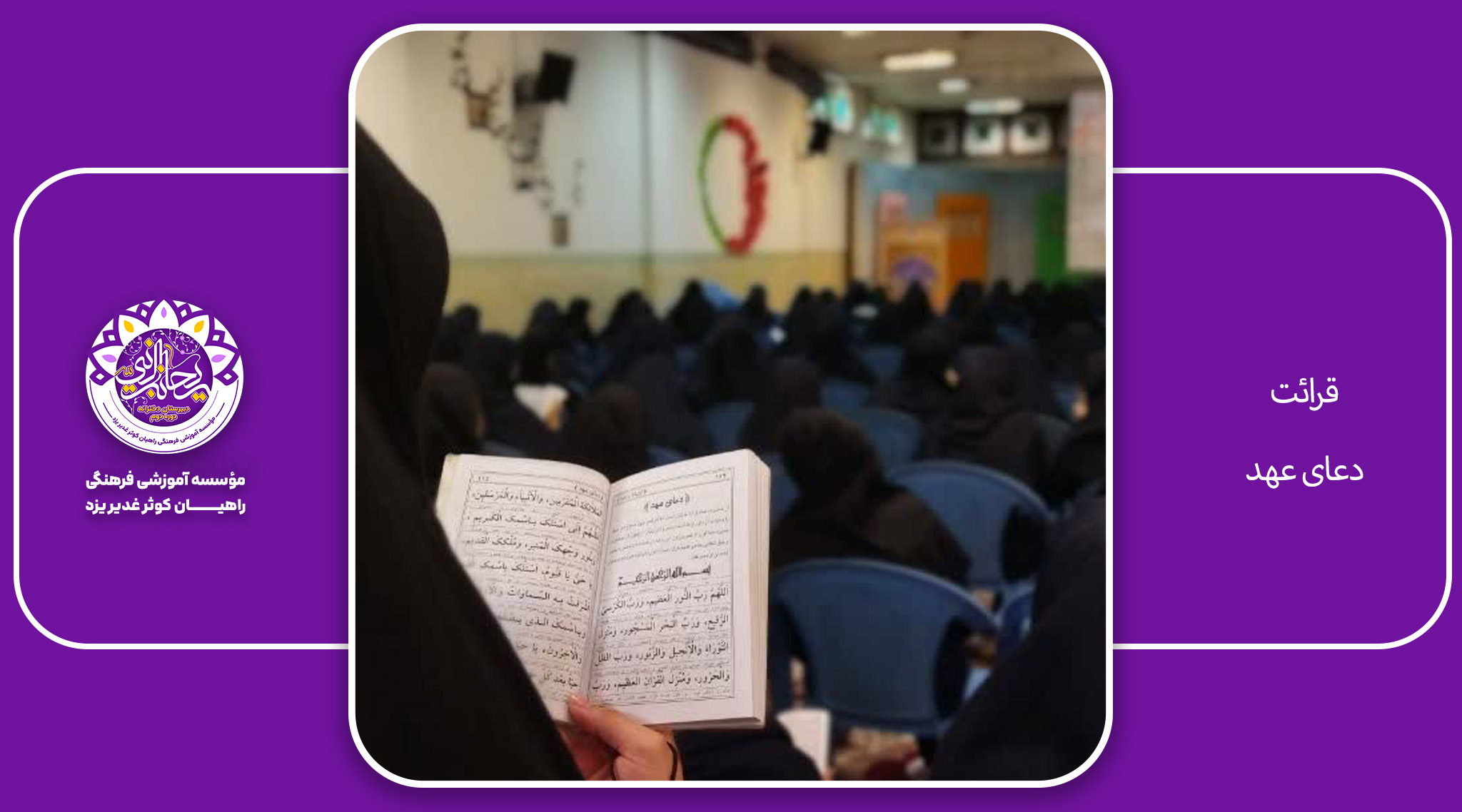 🔸صبحگاه امروز در فضای معنوی دبیرستان دوره دوم ریحانه النبی (س)، با تلاوت دلنشین دعای عهد آغاز شد. یکی از دانشآموزان با صوتی روحنواز، این دعای پرفیض را قرائت کرد و دلهای حاضران را به یاد امام عصر (عج) روانه ساخت. این لحظهی ناب، فرصتی بود برای تجدید عهد با امام زمان (عج) و آغاز روزی پر از امید و معنویت.