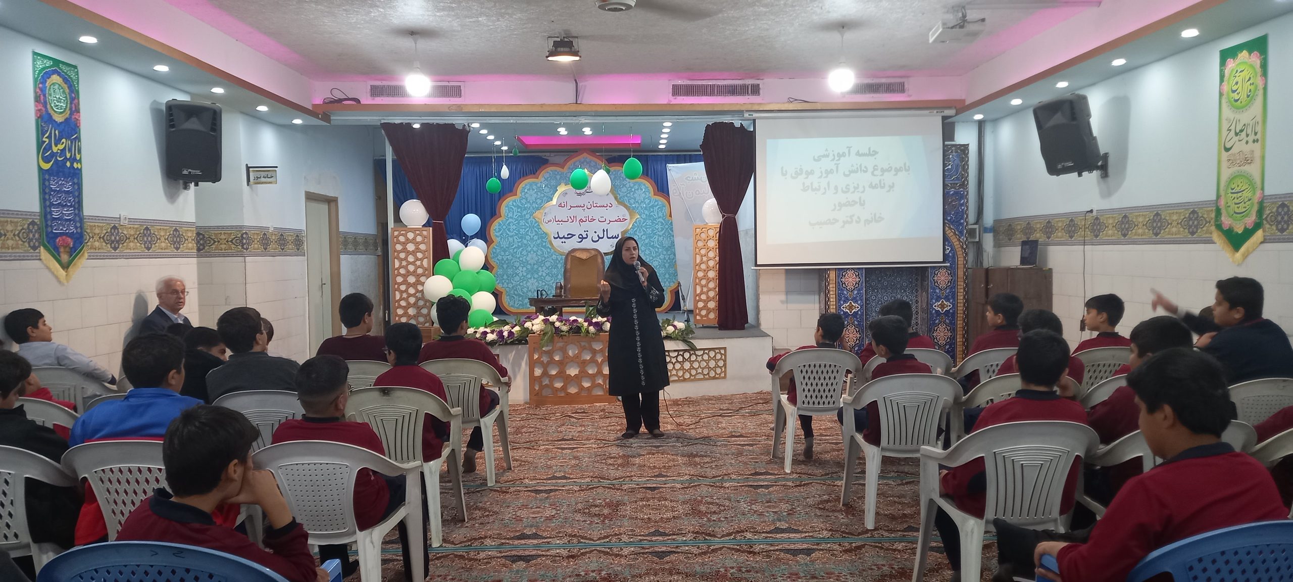 جلسه آموزشی با موضوع «برنامهریزی و ارتباط مؤثر» ویژه دانشآموزان پایه ششم، با حضور خانم دکتر حصیب، روانشناس برجسته،