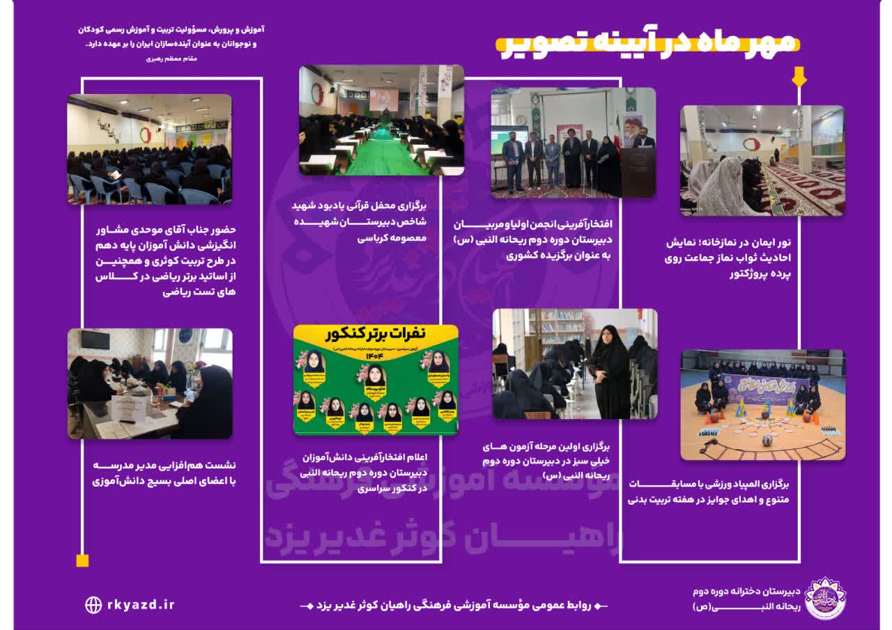 📌 این ماهنامه، آیینهای از همت، تلاش و همدلی دبیرستان دوره دوم ریحانه النبی س زیر نظر راهیان کوثر غدیر یزد است.