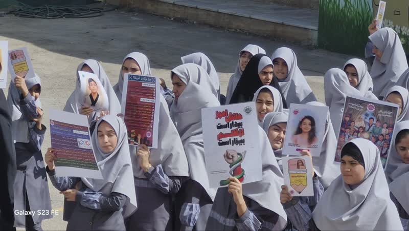 و در حیاط مدرسه اجتماع کردند و در #زنگ_استکبارستیزی فعالیت هایی به شرح ذیل انجام شد: