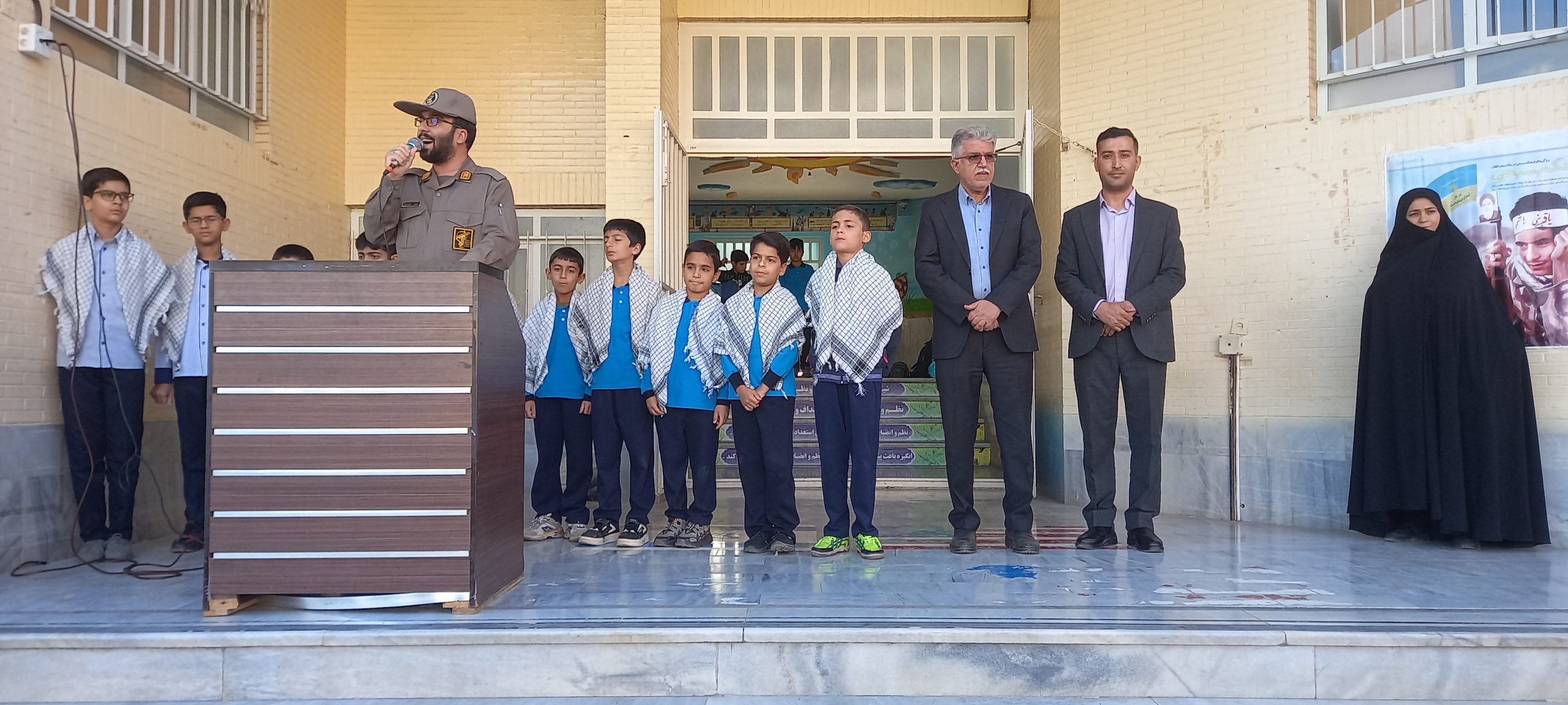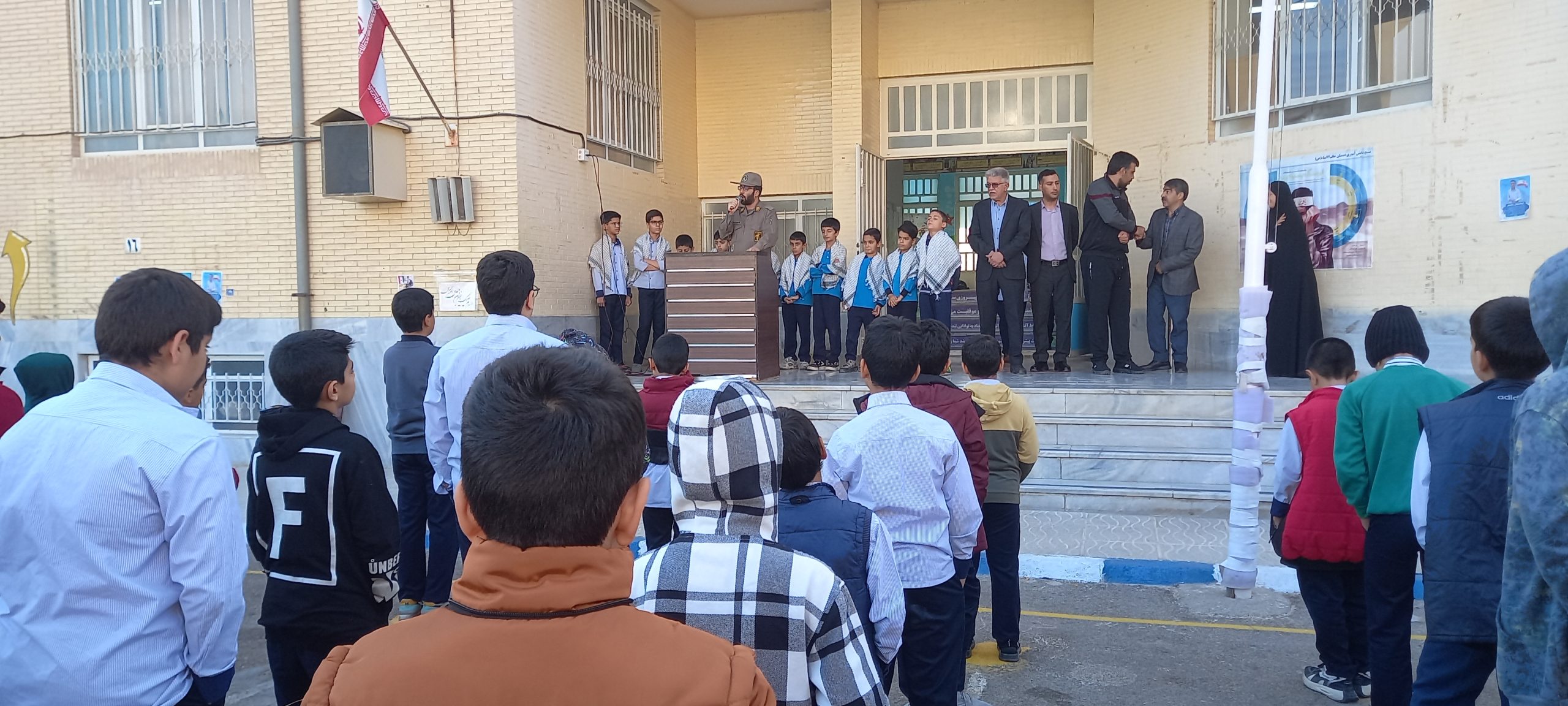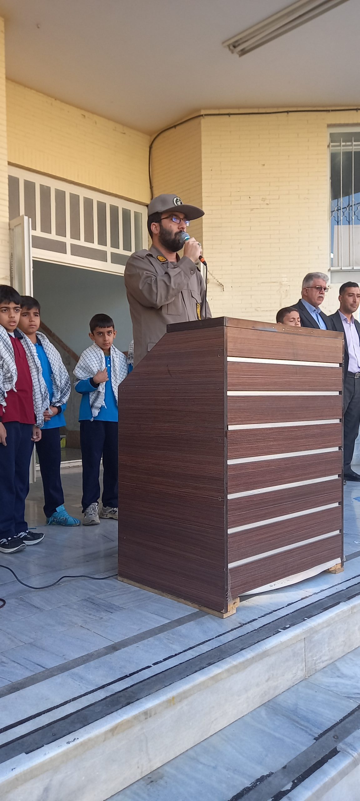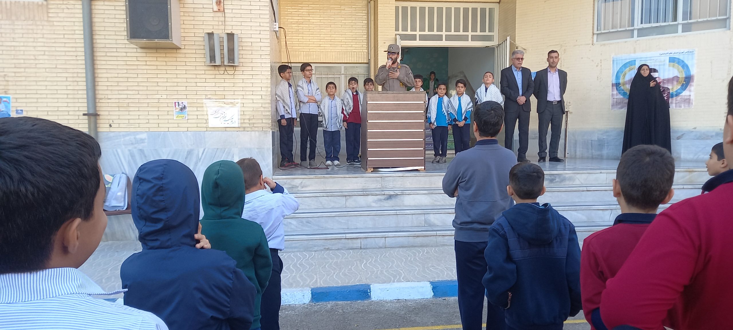 حضور فرمانده بسیج پایگاه مقاومت ناحیه یک پاسدار محترم جناب آقای مهدی ملک زاده در دبستان و گرامیداشت هفته بسیج دانش آموزی با سخنرانی ایشان در صبحگاه