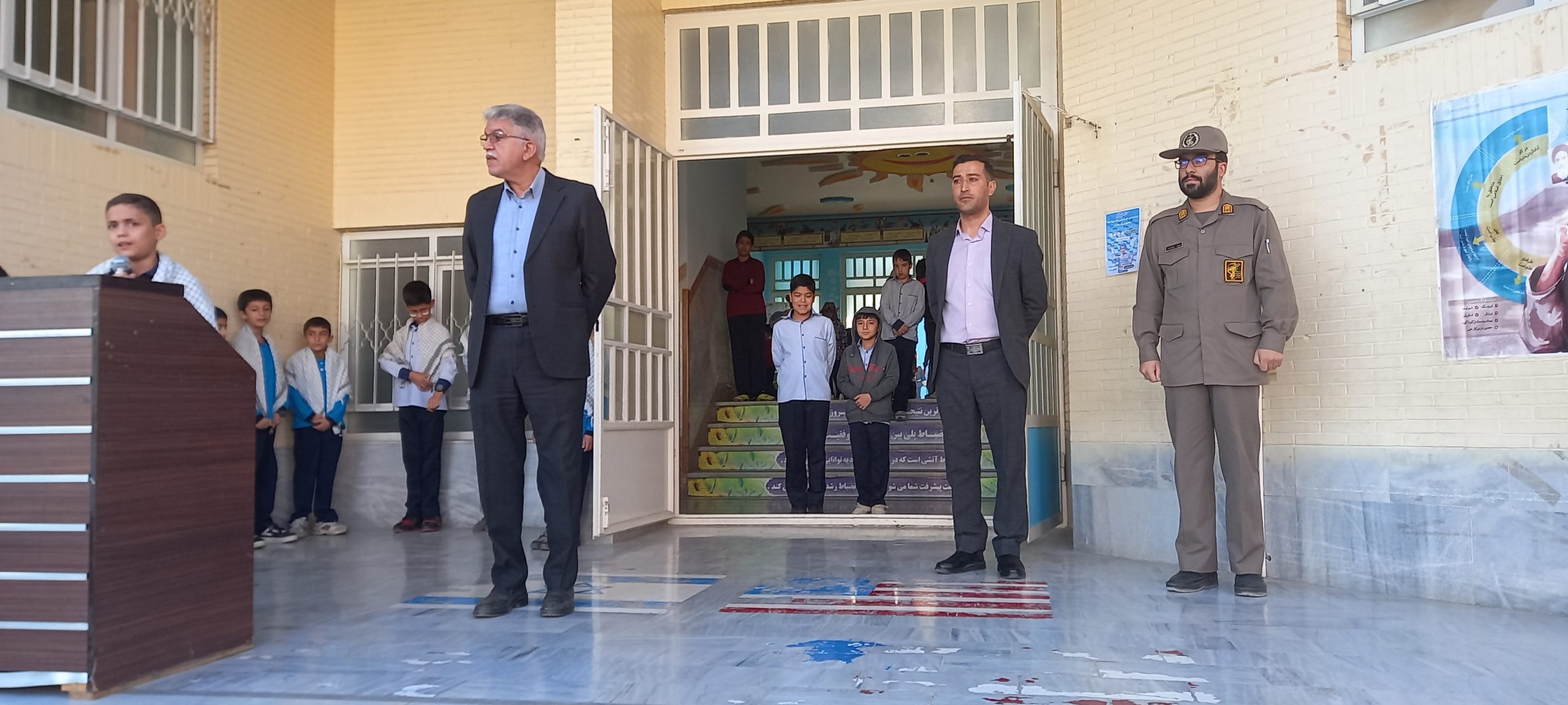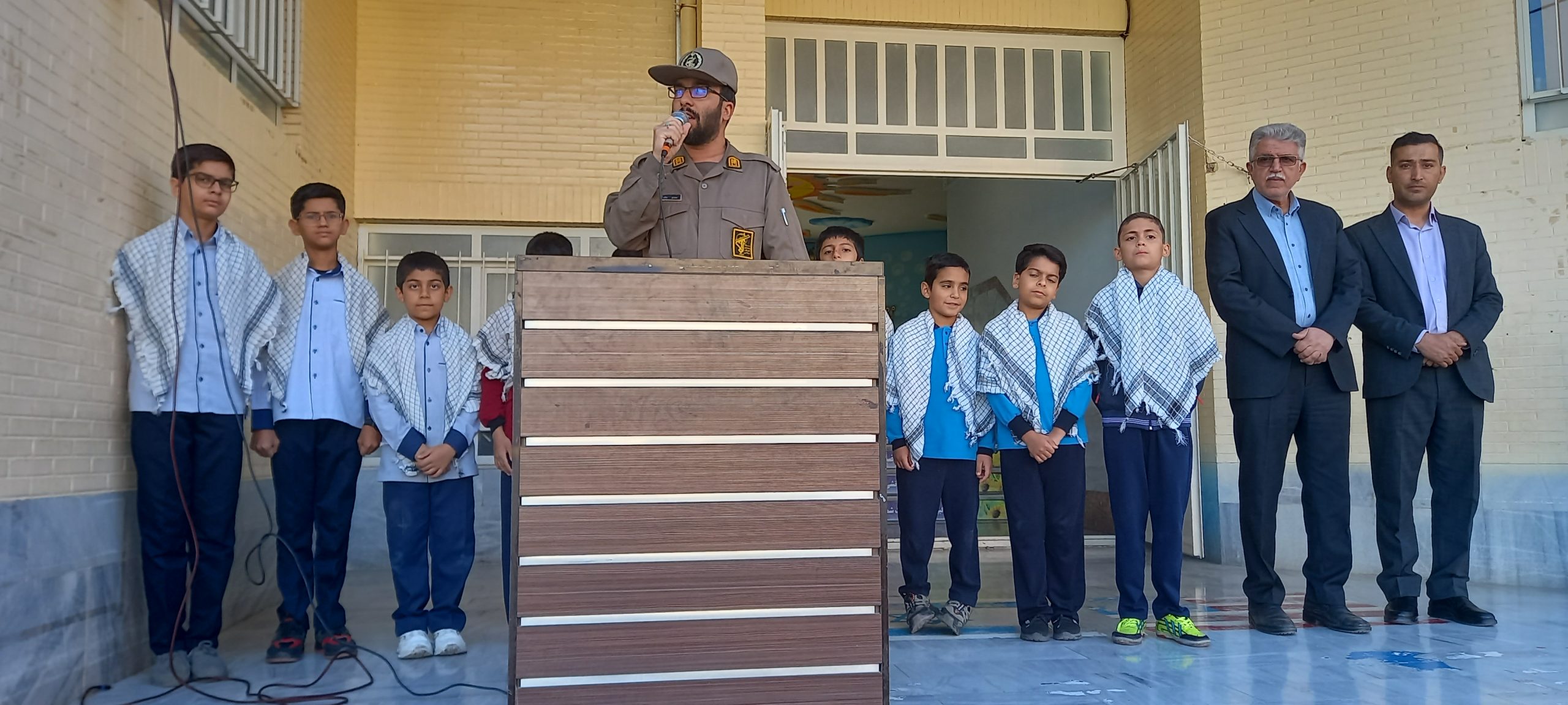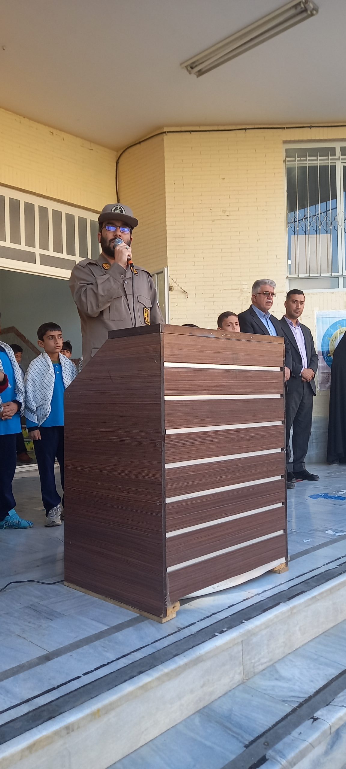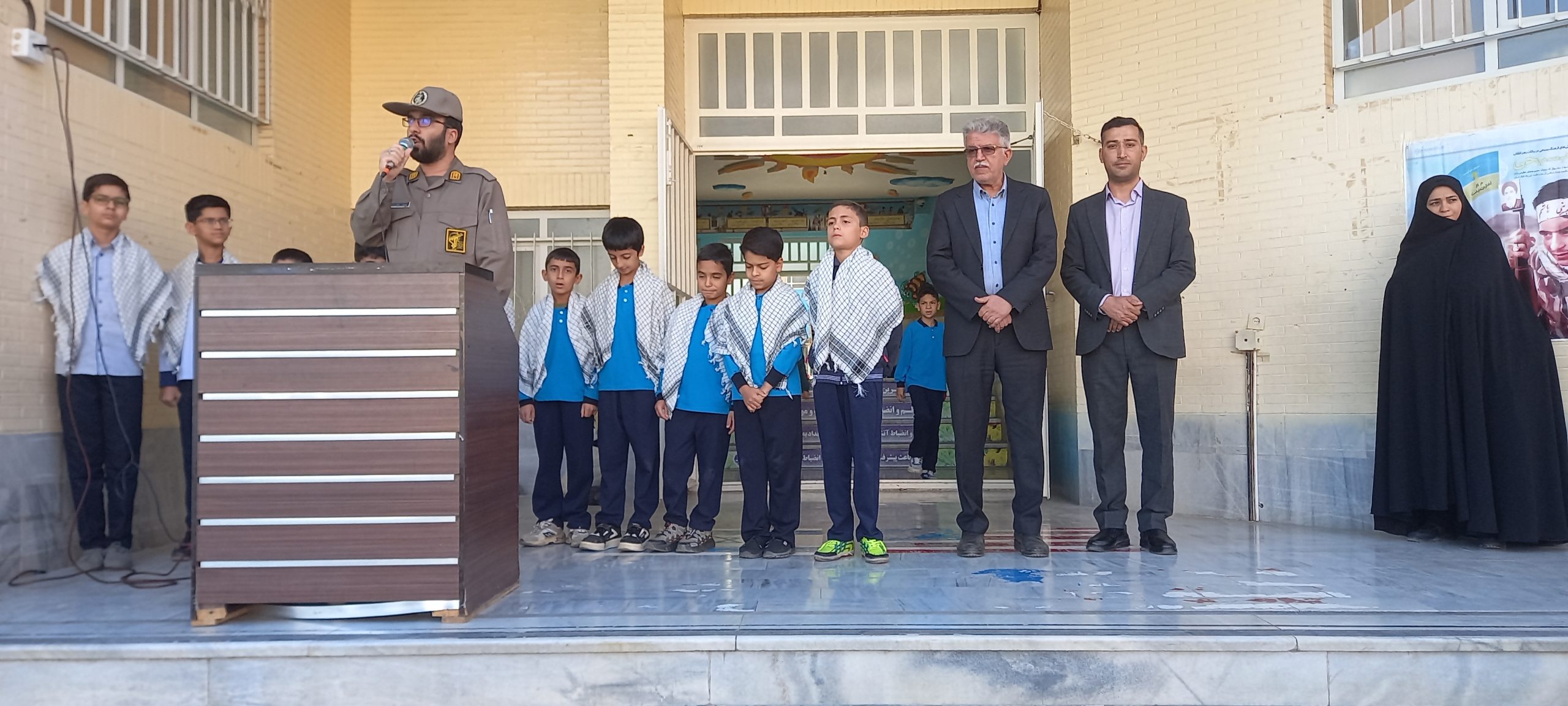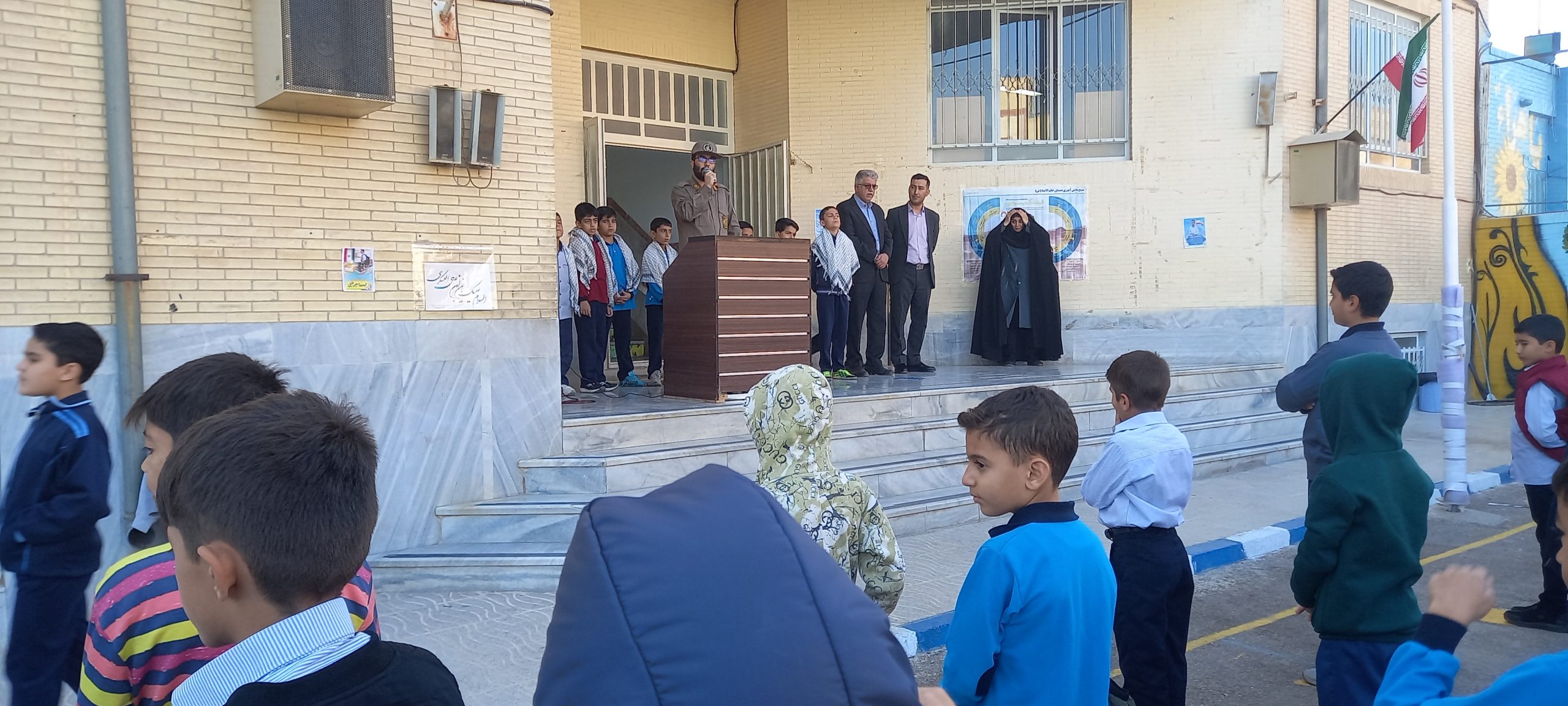 حضور فرمانده بسیج پایگاه مقاومت ناحیه یک پاسدار محترم جناب آقای مهدی ملک زاده در دبستان و گرامیداشت هفته بسیج دانش آموزی با سخنرانی ایشان در صبحگاه