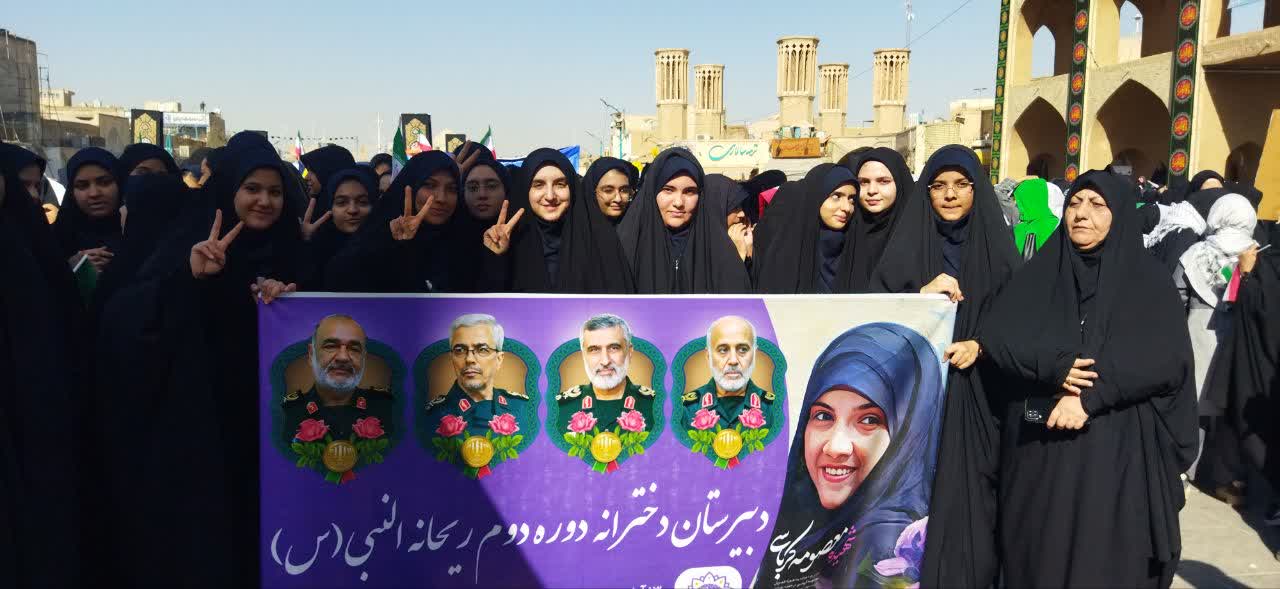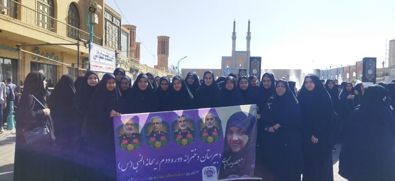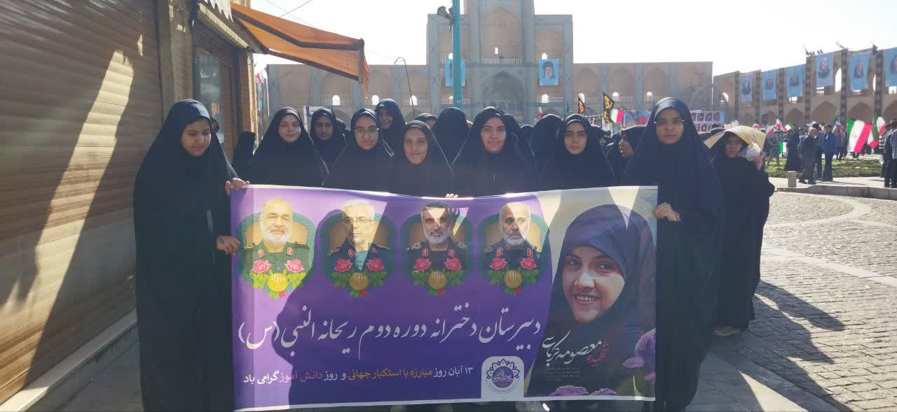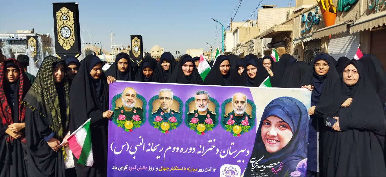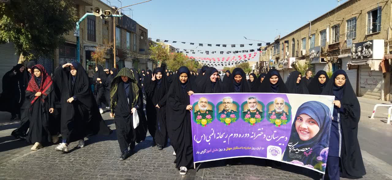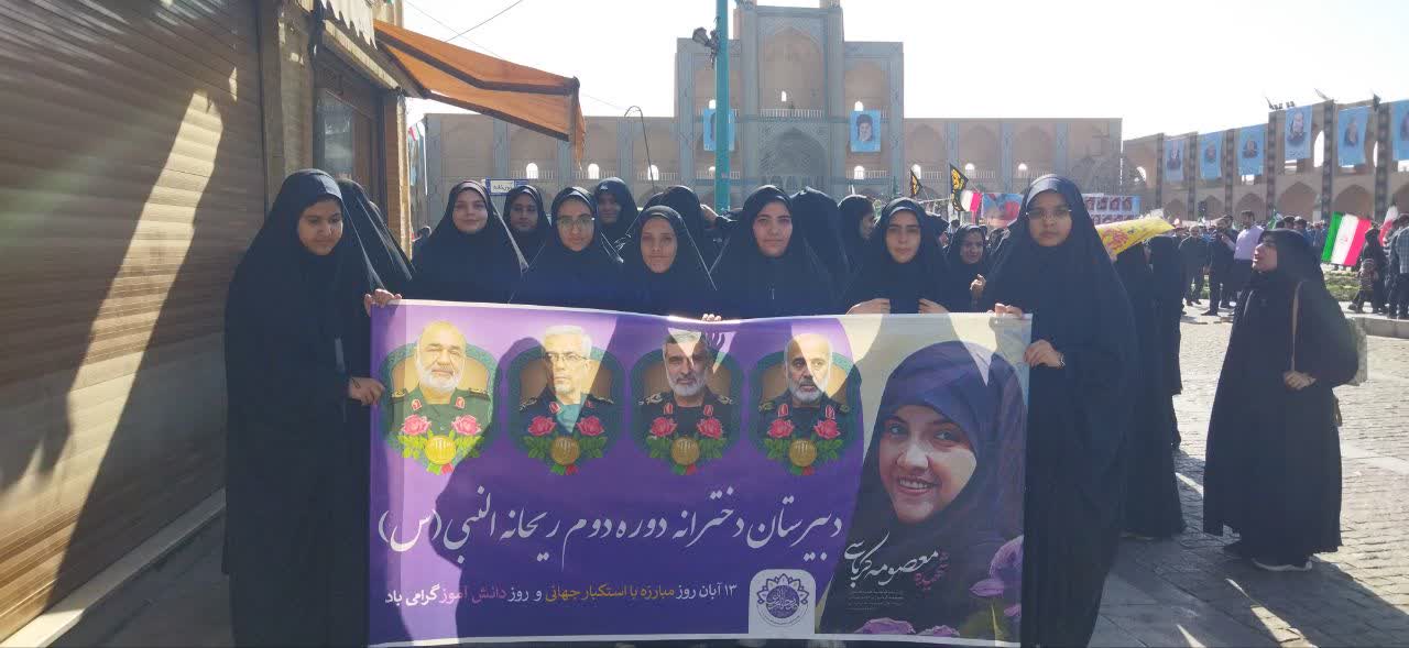 دانشآموزان دبیرستان دوره دوم ریحانه النبی (س) در راهپیمایی ۱۳ آبان حضور پرشور داشتند.