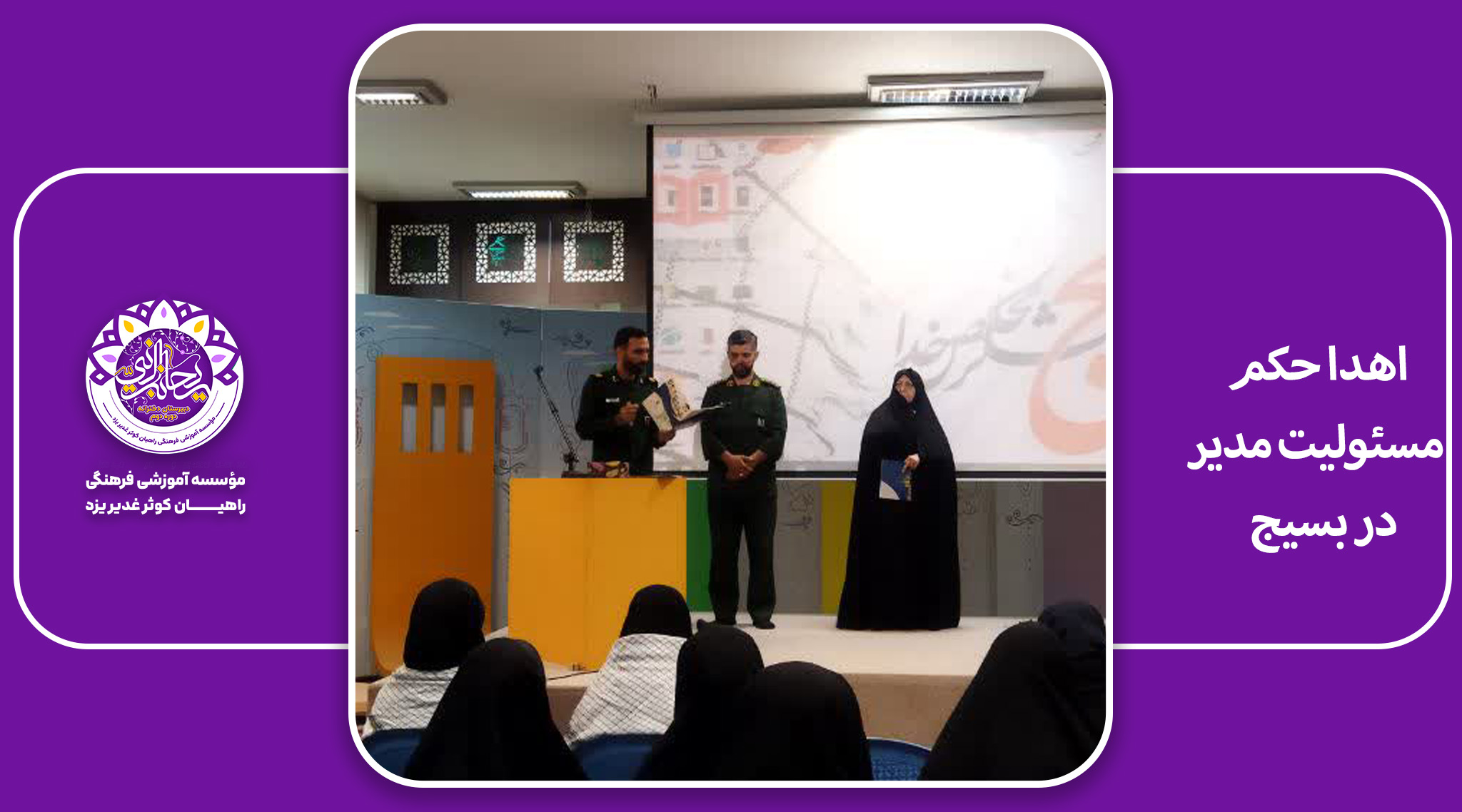 💠 با حضور سروان بابایی ، درهفته بسیج دانش آموزی حکم مسئولیت مدیریت دبیرستان دوره دوم ریحانه النبی (س) تقدیم شد.
