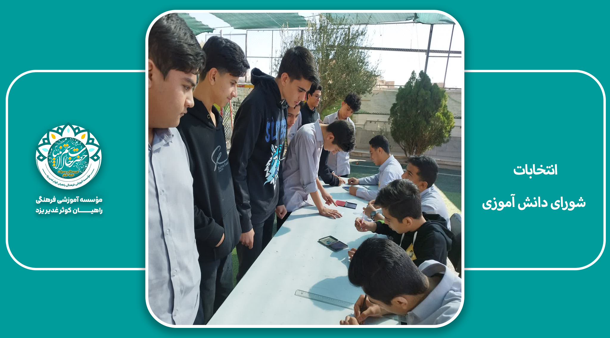 به گزارش روابط عمومی دبیرستان پسرانه دوره دوم خاتمالانبیاء، انتخابات شورای دانشآموزی این مدرسه روز دوشنبه ۱۹ آبانماه با حضور پرشور دانشآموزان برگزار شد.