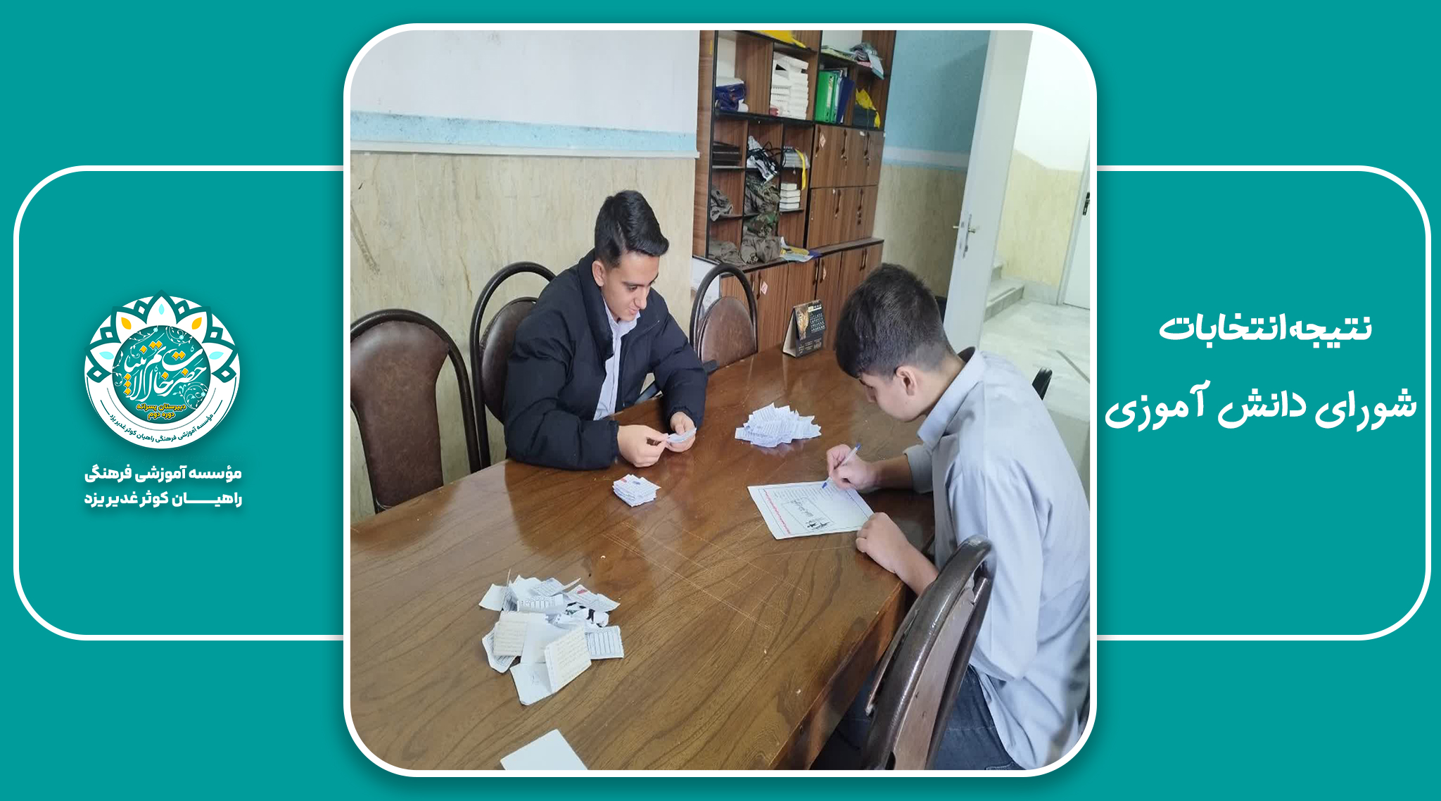مراسم شمارش آرا و اعلام نتایج انتخابات شورای دانشآموزی دبیرستان خاتم الانبیا (ص) با حضور مدیر، معاونت پرورشی و نمایندگان کاندیداها برگزار شد و دانشآموزان برگزیده برای سال تحصیلی جاری مشخص شدند.