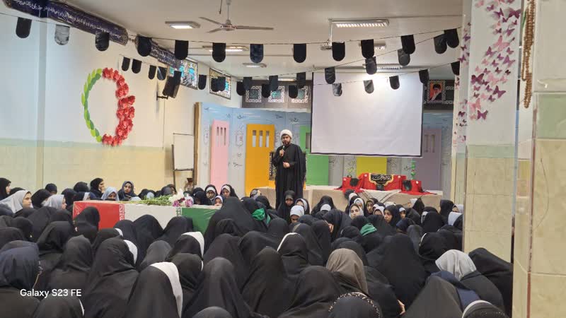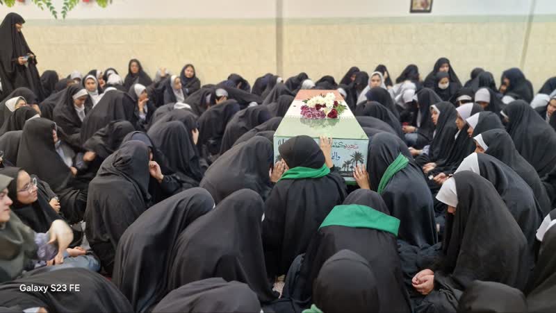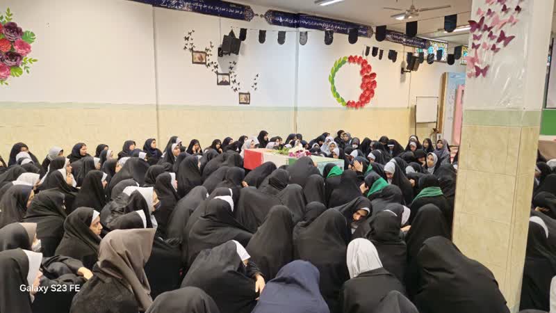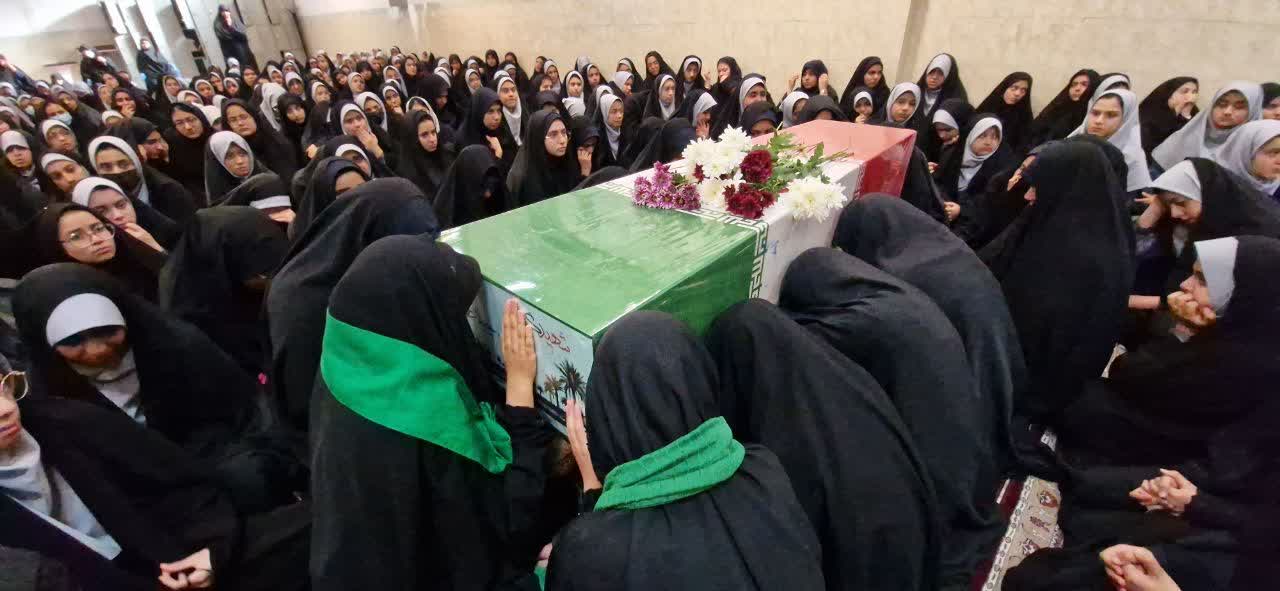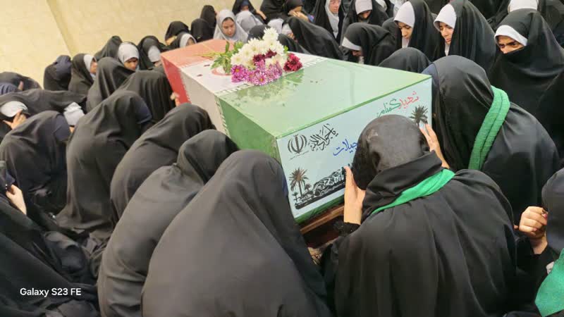 قدمهای کوچک اما پرشور دانشآموزان، شهید را تا نمازخانه همراهی کرد؛ جایی که جایگاه ویژهای برای او آراسته شده بود.