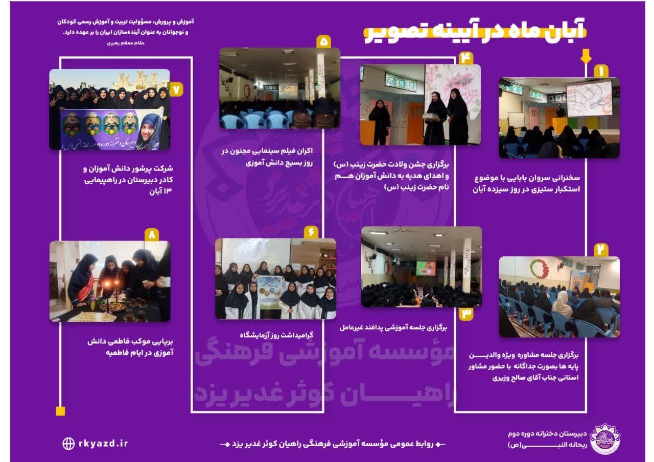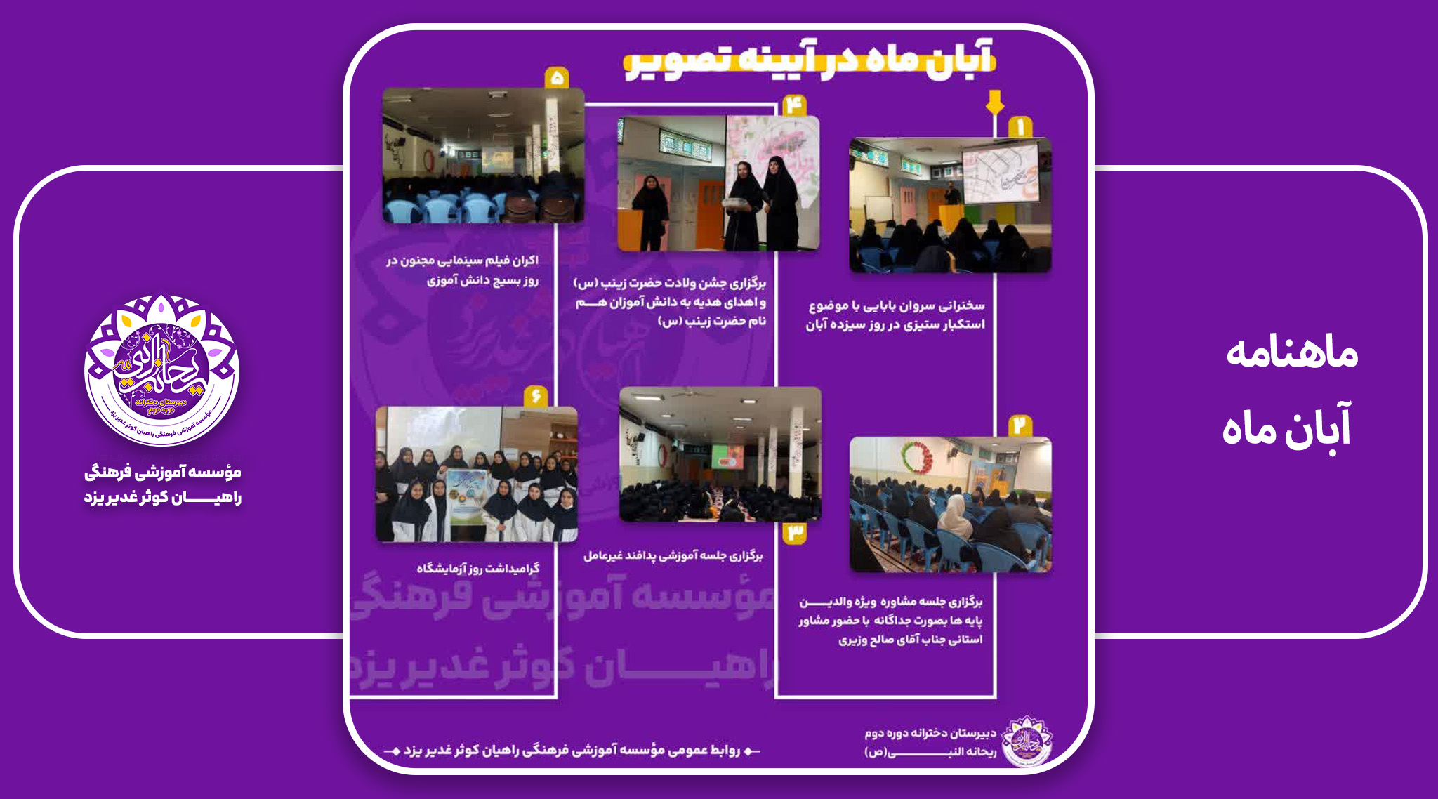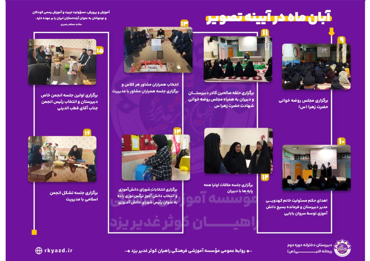 📌 این ماهنامه، آیینهای از همت، تلاش و همدلی دبیرستان دوره دوم ریحانه النبی س زیر نظر راهیان کوثر غدیر یزد است.