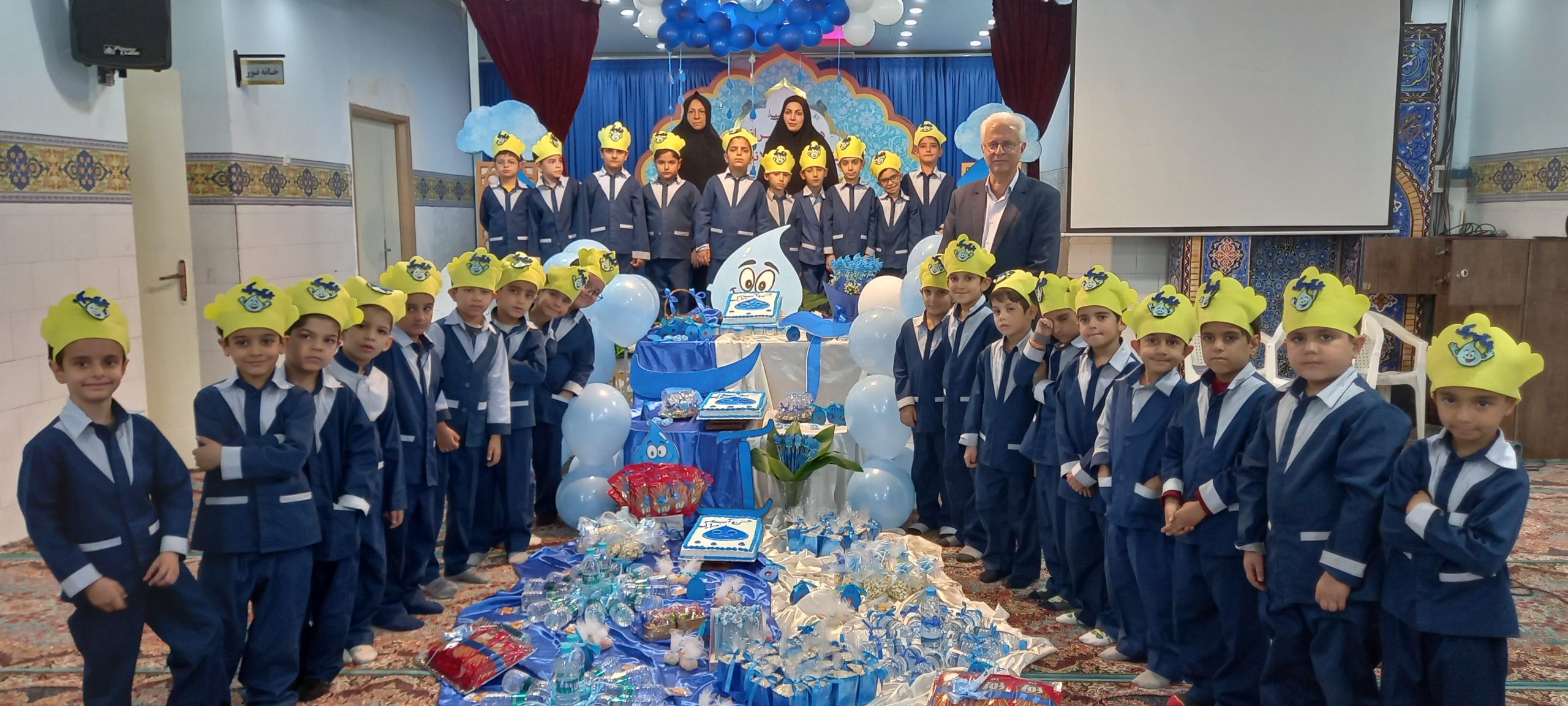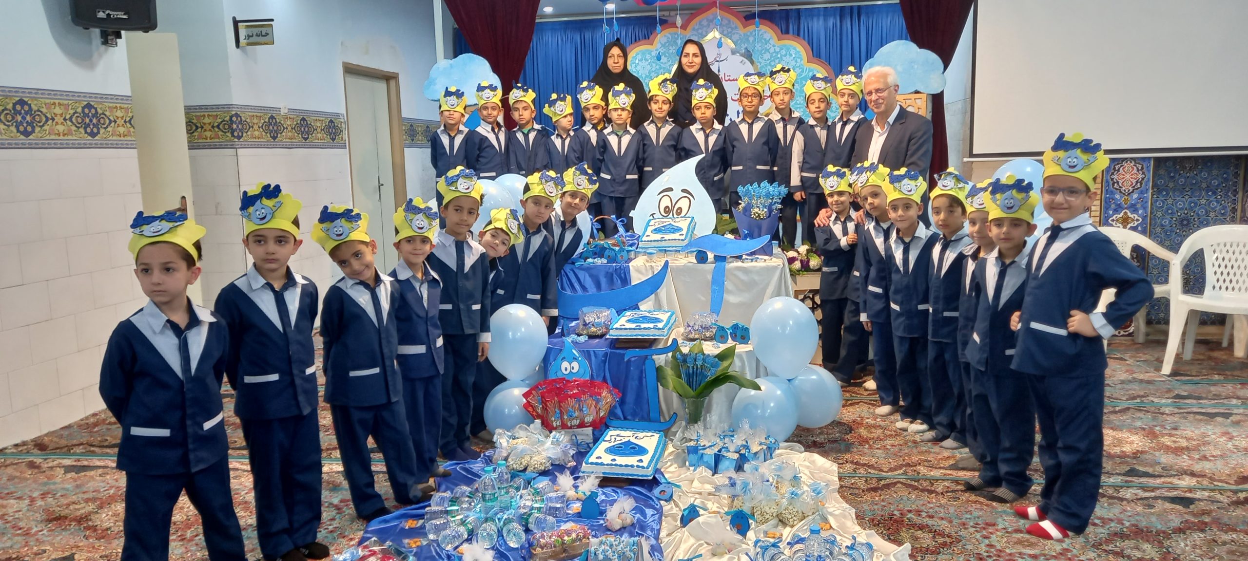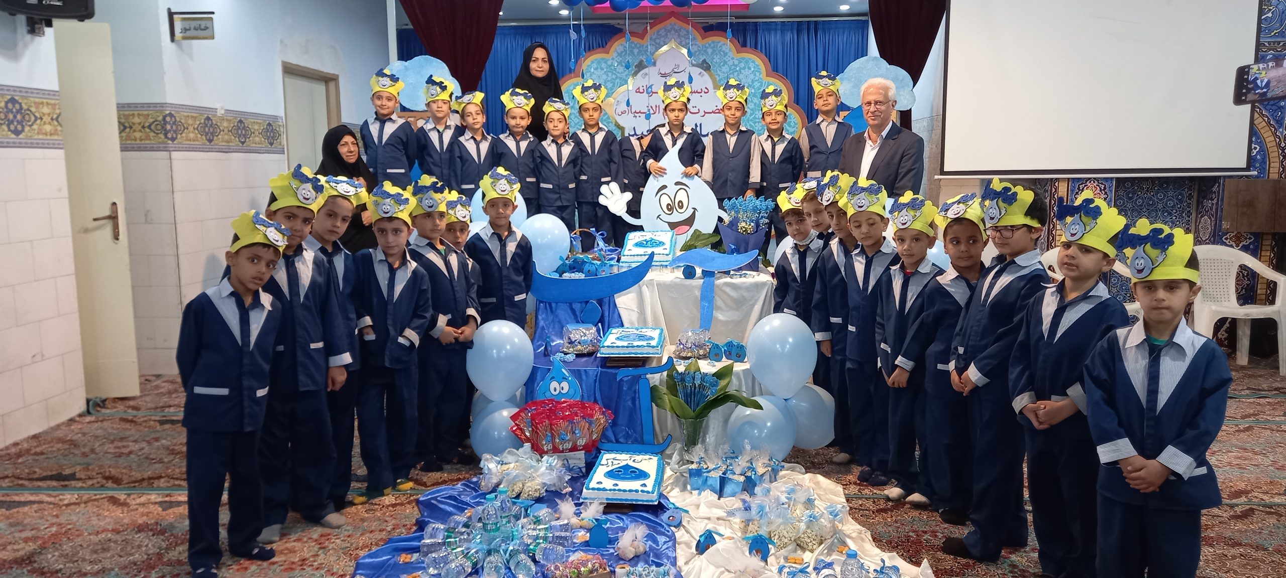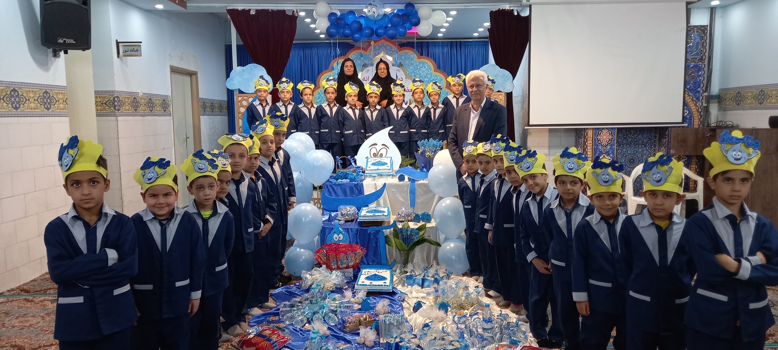 برپایی جشن آب پایه اول با هدف ایجاد انگیزه دانش آموزان دریاد گرفتن حرف آ در سالن توحید برگزار شد.