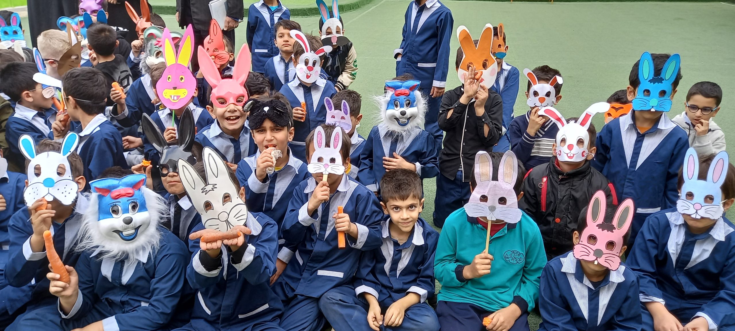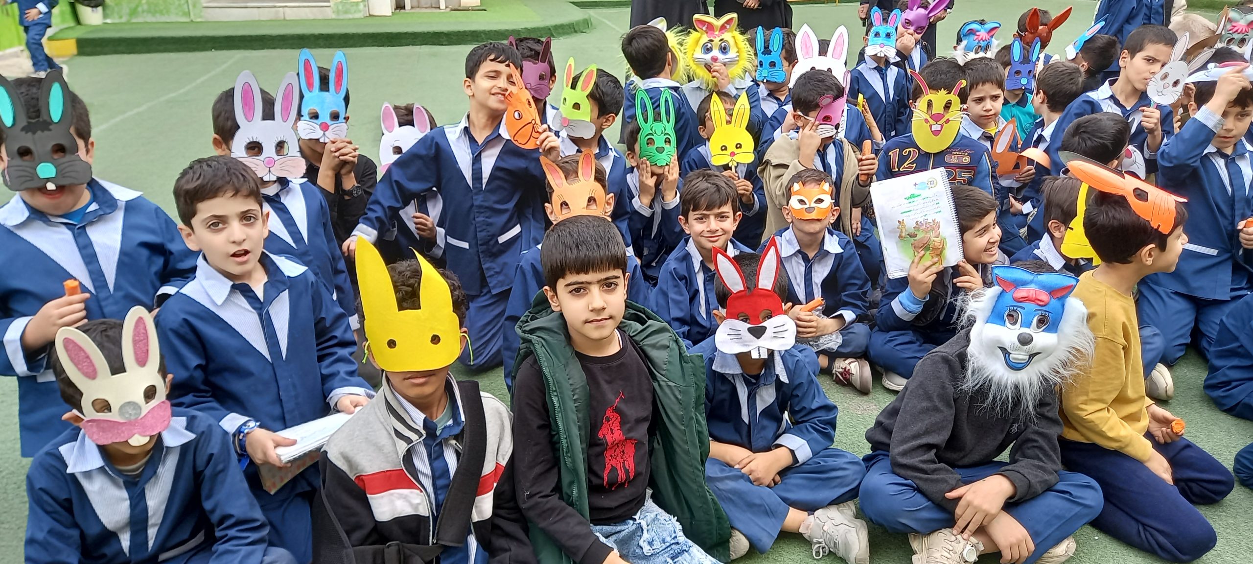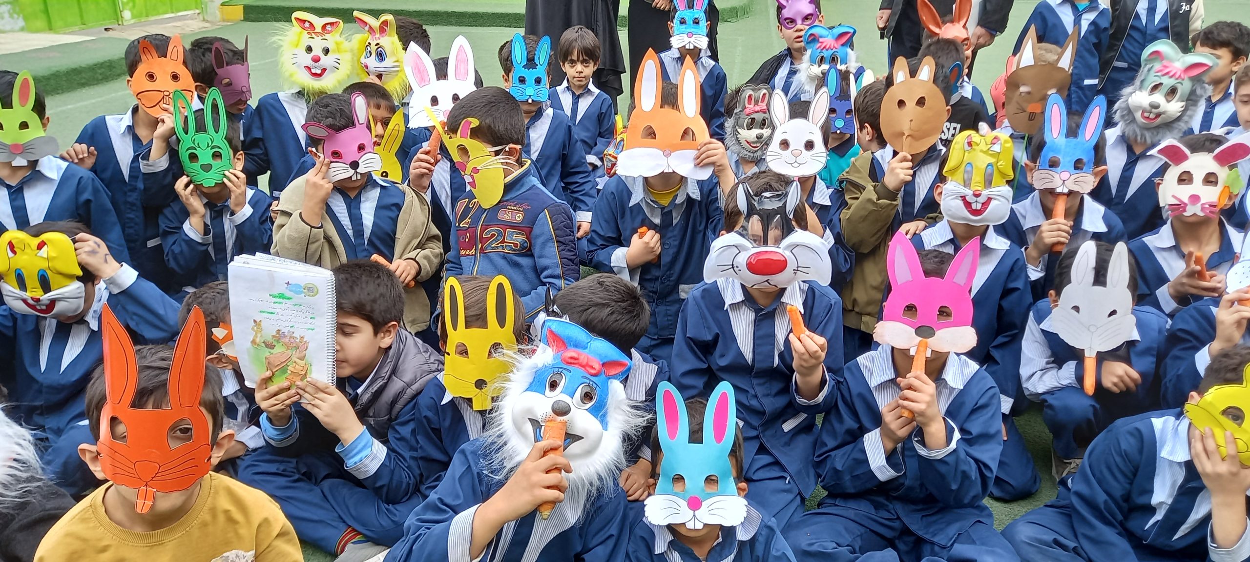 در این برنامه شاد که توسط معلمان خوش ذوق پایه دوم انجام شد دانش آموزان با درست کردن ماسک های خرگوشی و آمدن درحیاط مدرسه و اجرای نقش خرگوش با انگیزه بیشتری مشتاق یادگیری درس مدرسه ی خرگوش ها از کتاب فارسی پایه دوم شدند.