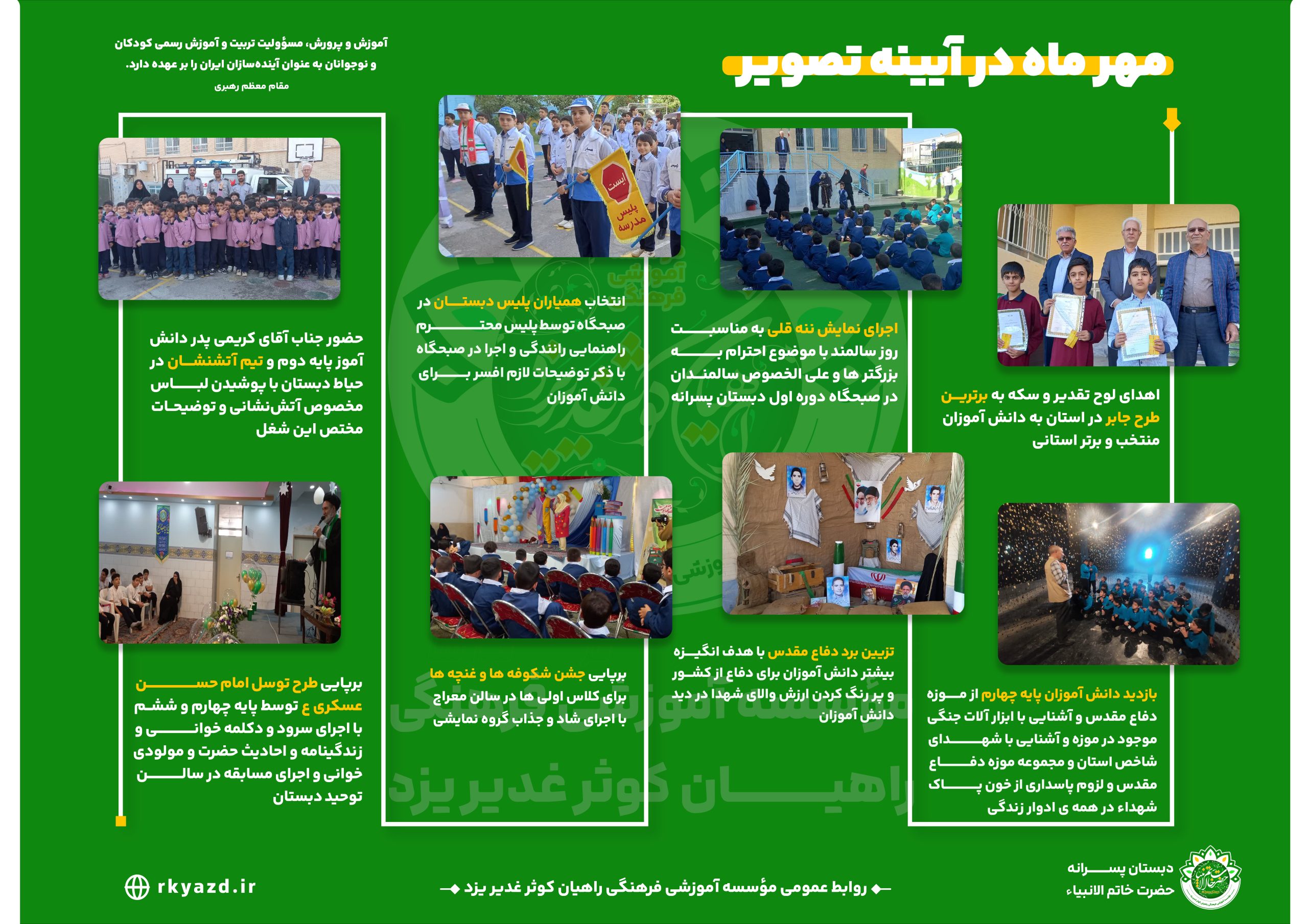 در این شماره، به فعالیتهای آموزشی میپردازیم؛ از کلاسهای درس پویا که با بازی و تمرینهای هدفمند همراه بود تا پروژههایی که خلاقیت و کنجکاوی دانشآموزان را شکوفا کرد. 📚📝✨