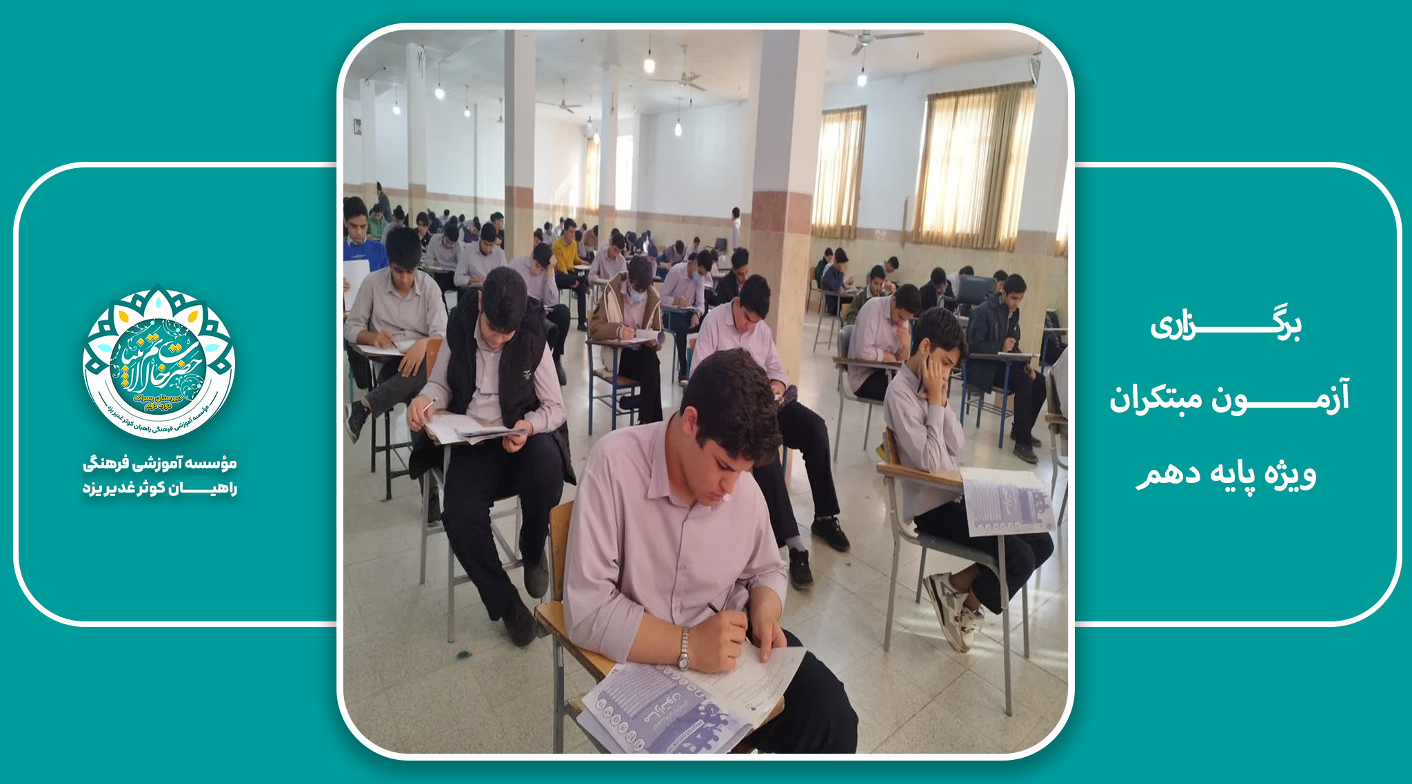 بهمنظور ارزیابی سطح علمی دانشآموزان و شناسایی استعدادهای برتر، آزمون مبتکران پایه دهم در دبیرستان پسرانه خاتمالانبیاء (ص) برگزار شد.