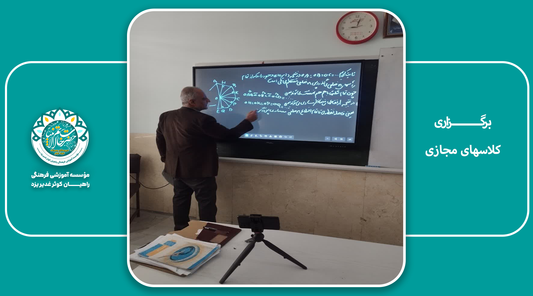در پی شیوع بیماری آنفلوآنزا و با هدف حفظ سلامت دانشآموزان، کلاسهای دبیرستان پسرانه خاتمالانبیا(ع) طبق برنامهی هفتگی مصوب بهصورت مجازی برگزار شد.