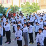 - دبستان پسرانه خاتم الانبیاﷺ: دانشآموزان پس از ورود به حیاط مدرسه، در صفهای کلاس خود قرار گرفتند و توسط مدیر مدرسه مورد استقبال قرار گرفتند. تزئینات صبحگاه با نمادهای دفاع مقدس، فضای خاصی را در مدرسه ایجاد کرده بود.