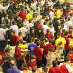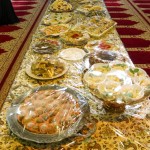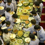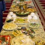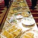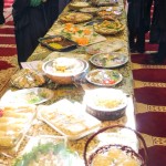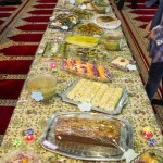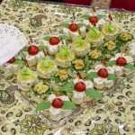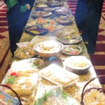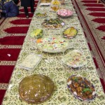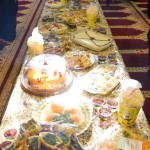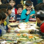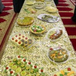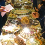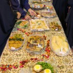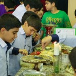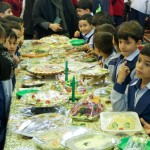 هر کلاس میز مخصوص به خود را داشت که توسط خانوادهها با غذاهای آماده شده و تزئینات متنوع آراسته شده بود.