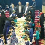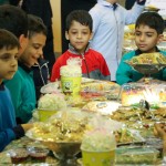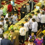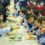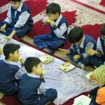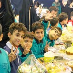 دانشآموزان با شوق و ذوق به حسینیه آمدند و با دیدن انواع غذاهای خوشمزه، هیجانزده شدند. آنها با دوستان خود در مورد غذاها صحبت میکردند، یکدیگر را به صرف غذا دعوت میکردند و با شادی دور هم جمع شده بودند.
