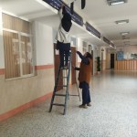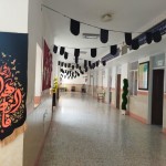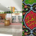 در گوشه و کنار مدرسه، ریسه های مشکی و کتیبه هایی منقش به نام مبارک ایشان نصب کردند.