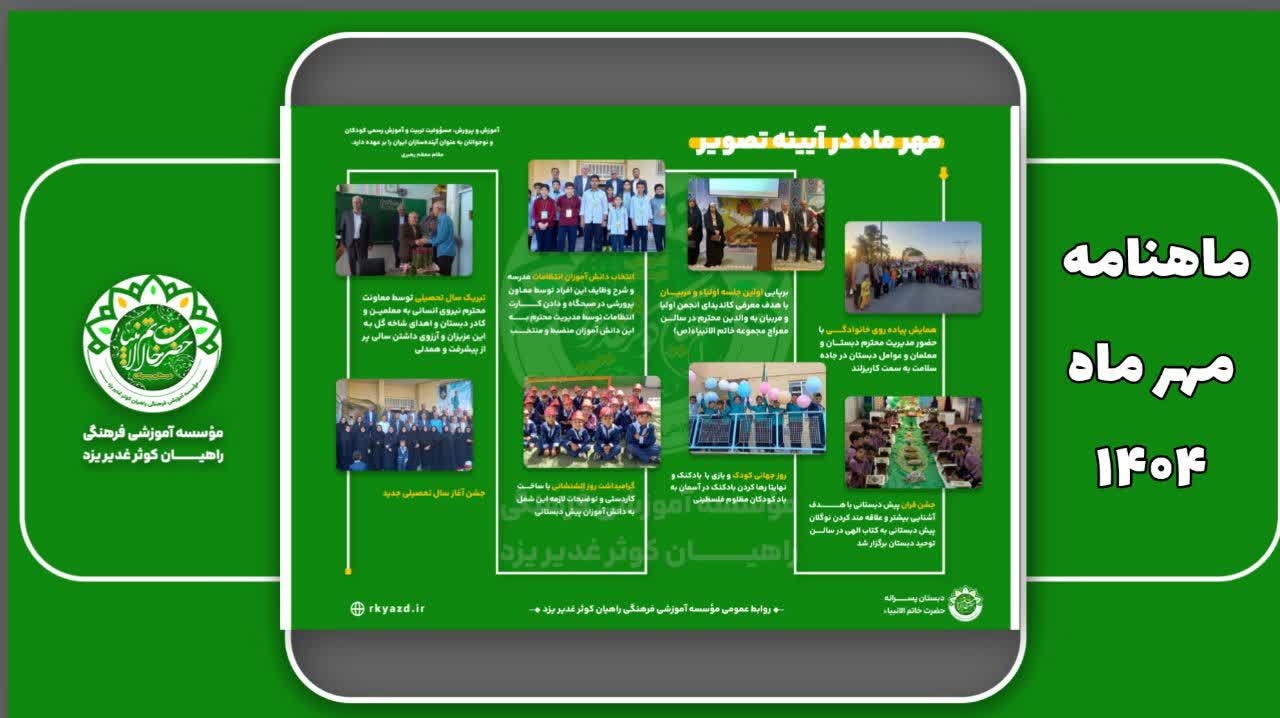 مهر 30, 1404 📘✨ ماهنامه مِهرِ مهرماه دبستان منتشر شد! آغاز سال تحصیلی همواره با شوق، هیجان و لبخند کودکان همراه است؛ ...